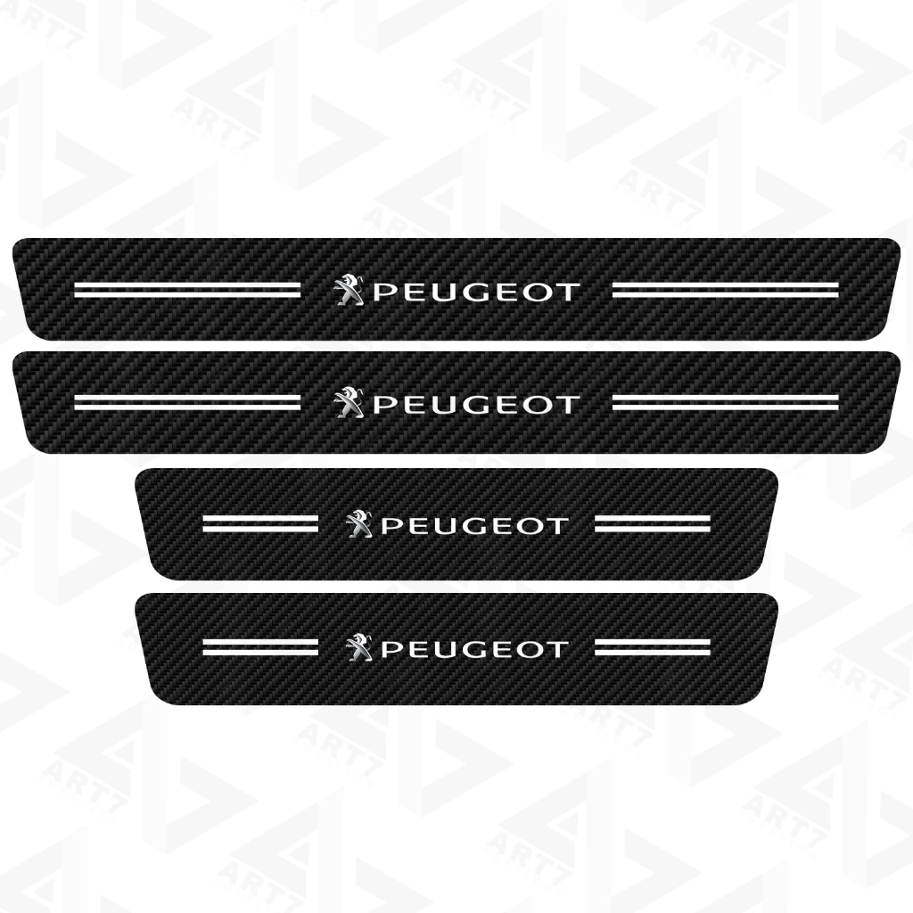 Kit 4 Peças Adesivo Vinil Soleira de Porta Carro Modelo Compatível Peugeot Proteção Fibra de Carbono