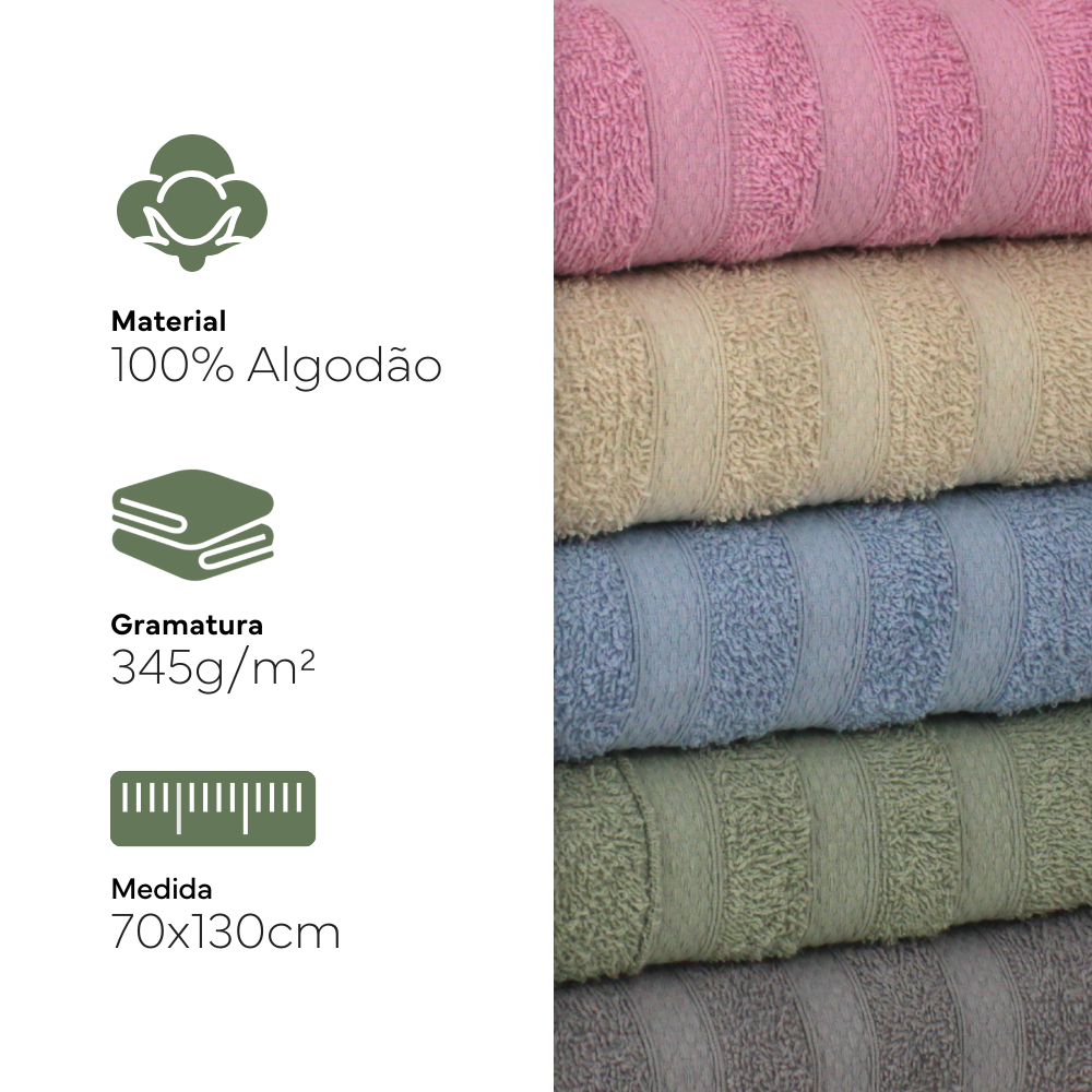 Kit 10 Toalhas de Banho 70cm x 130cm 100% Algodão | Macias Felpudas Alta Absorção Secagem Rápida