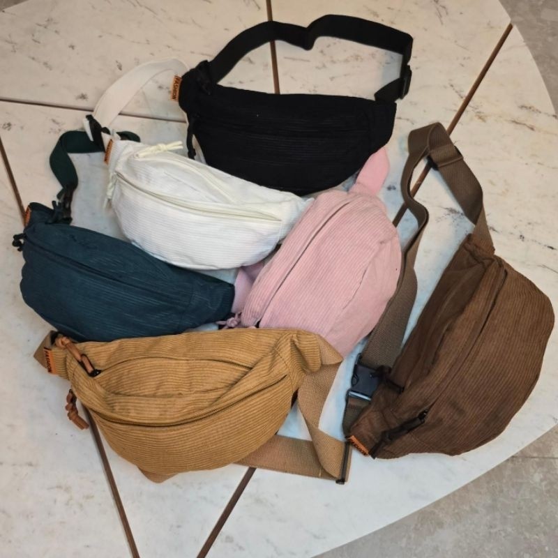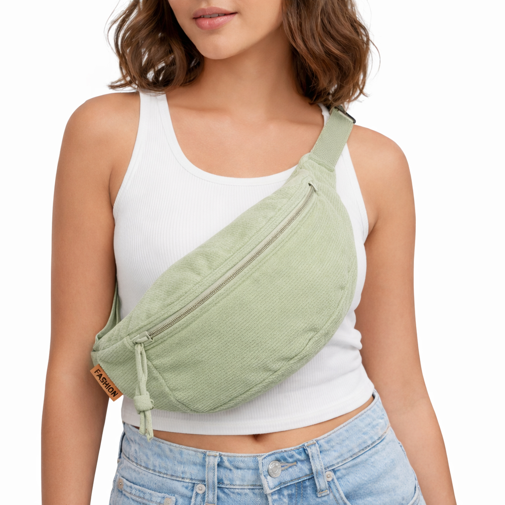 Pochete Bag Lateral Peitoral Veludo Cotelê Camurça Unissex | Caramelo Branco Rosa Marrom Preto Verde