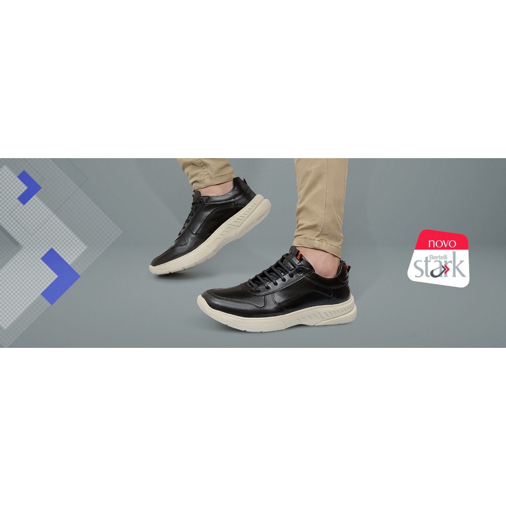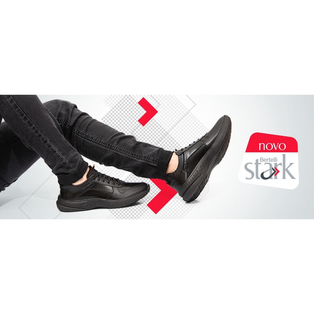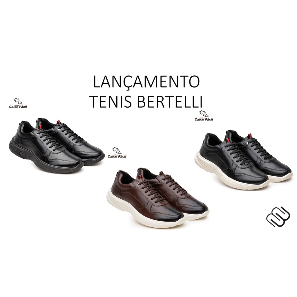 Tênis Casual Masculino Couro Sola Alta Confortável Sapataria Bertelli