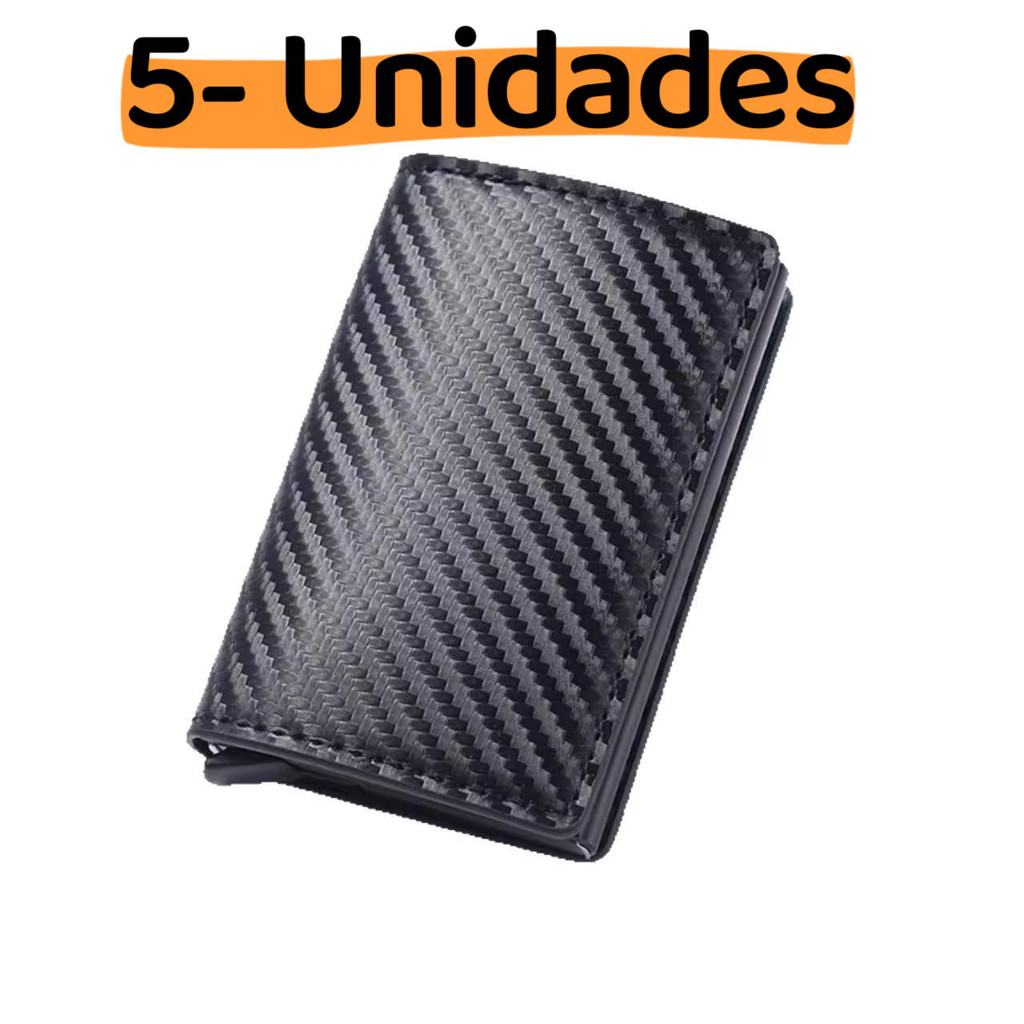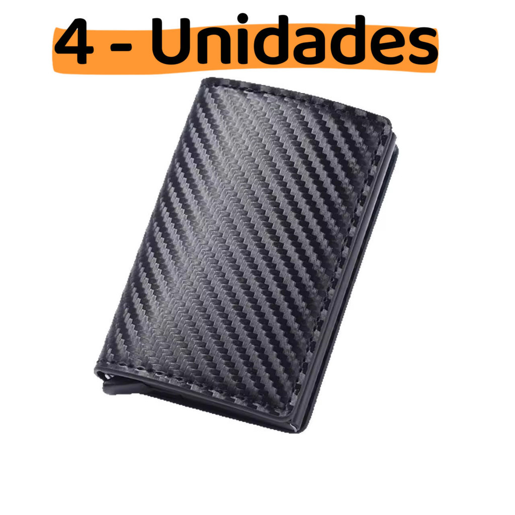 Carteira Slim Automática Tripla Em Couro E Fibra De Carbono Porta-Cartões Masculina Proteção RFID