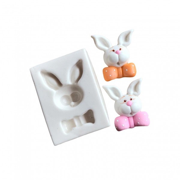 Molde De Silicone Carinha Coelho Com Laço Molde Para Confeitaria Molde Para Biscuit 1295