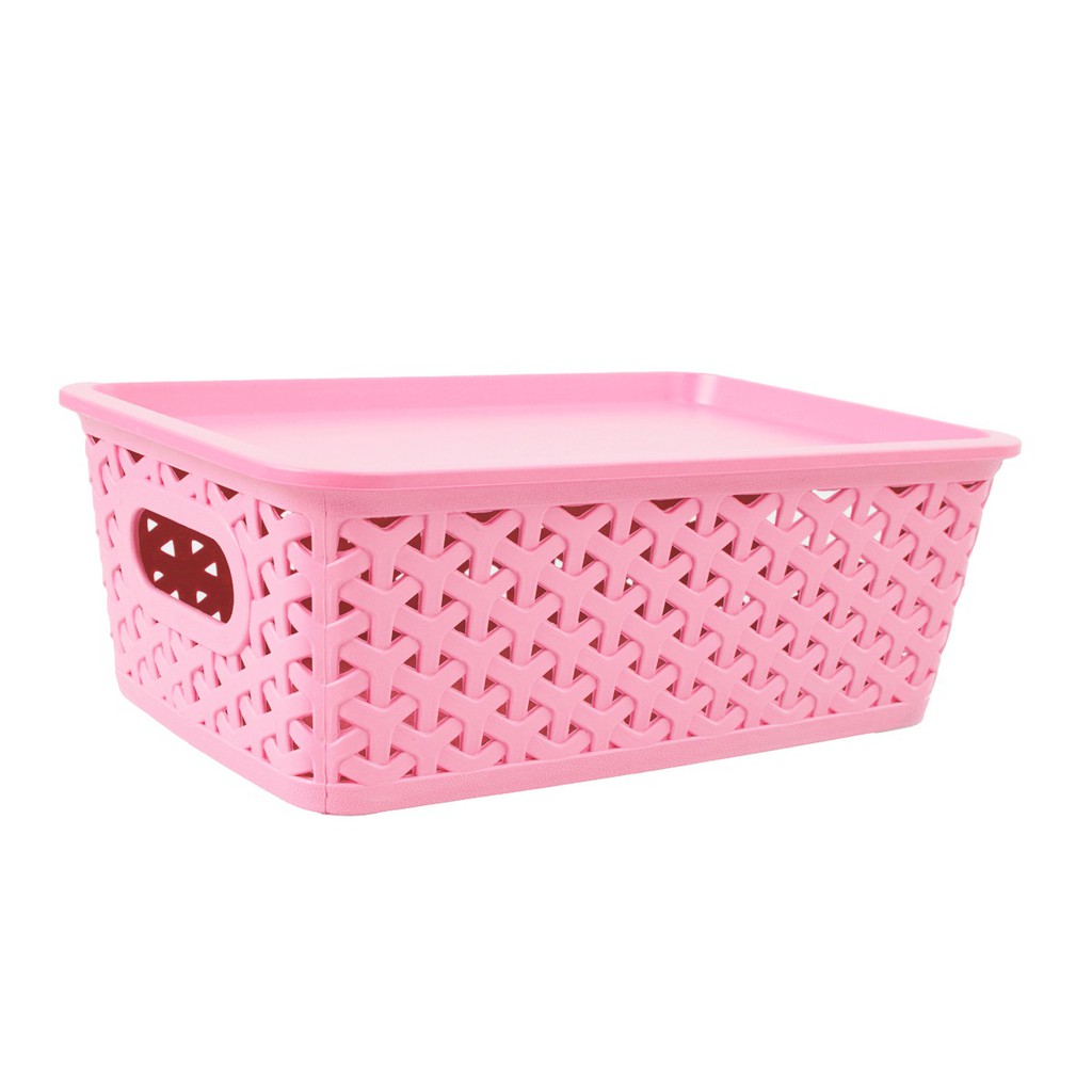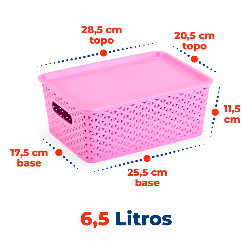 8 Caixas Organizadoras Rattan Rosa 6,5 Litros C/ Tampa