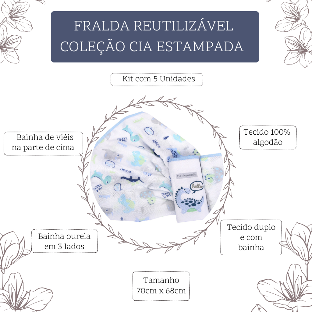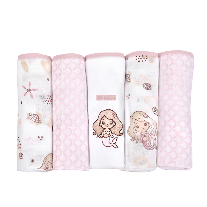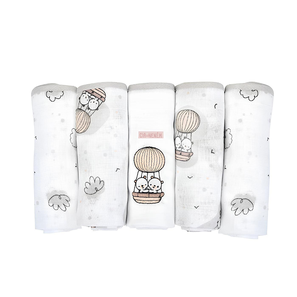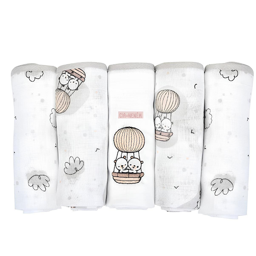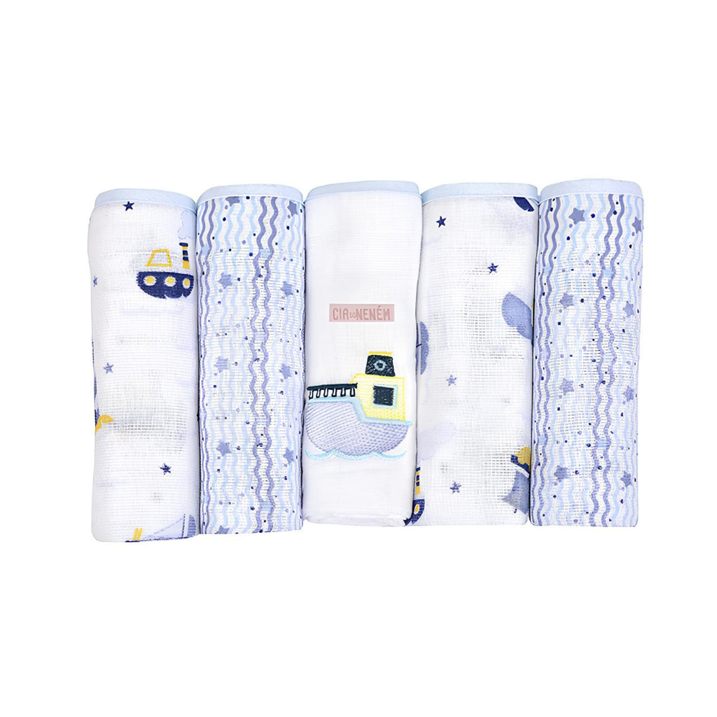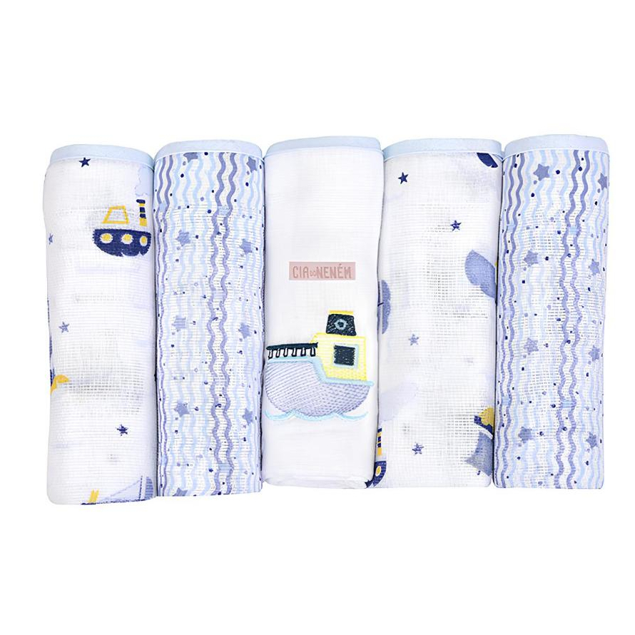 Fralda Bordada Bebê de Ombro 70x68cm Kit 5 Un. Com Bainha Cia do Neném - Minasrey