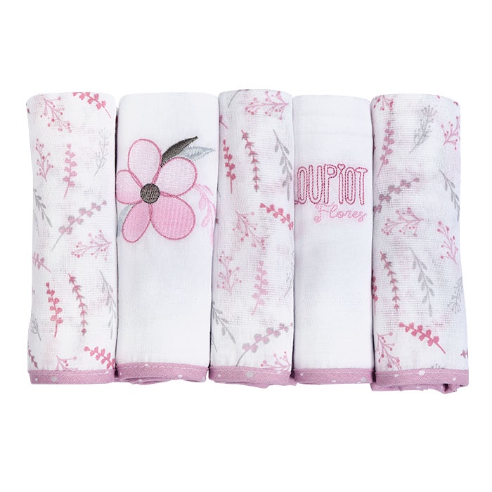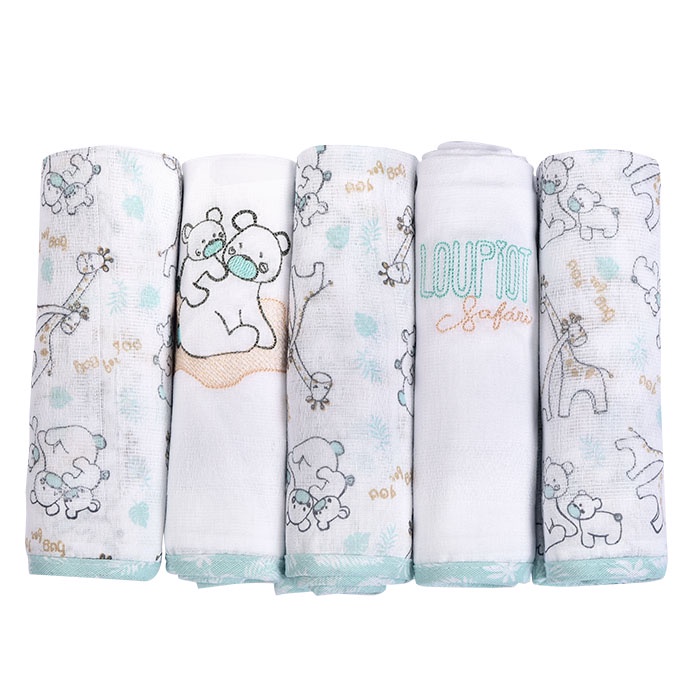 Fralda de Ombro 70x68cm Kit 5 Un. Bordada Loupiot Temas Minasrey