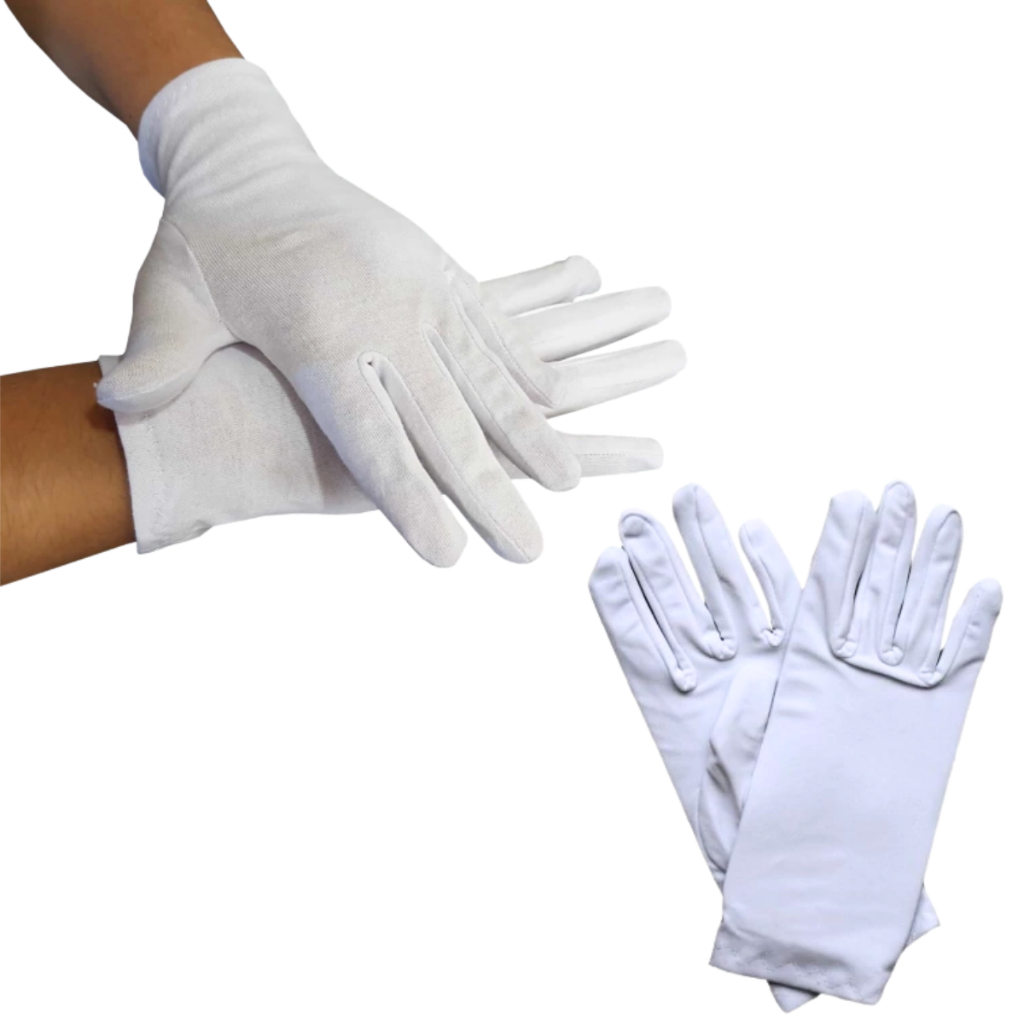Luva Branca Lycra Lisa Algodão Par Músicos Garçons Banda Clássica Cetim Curta Cosplay