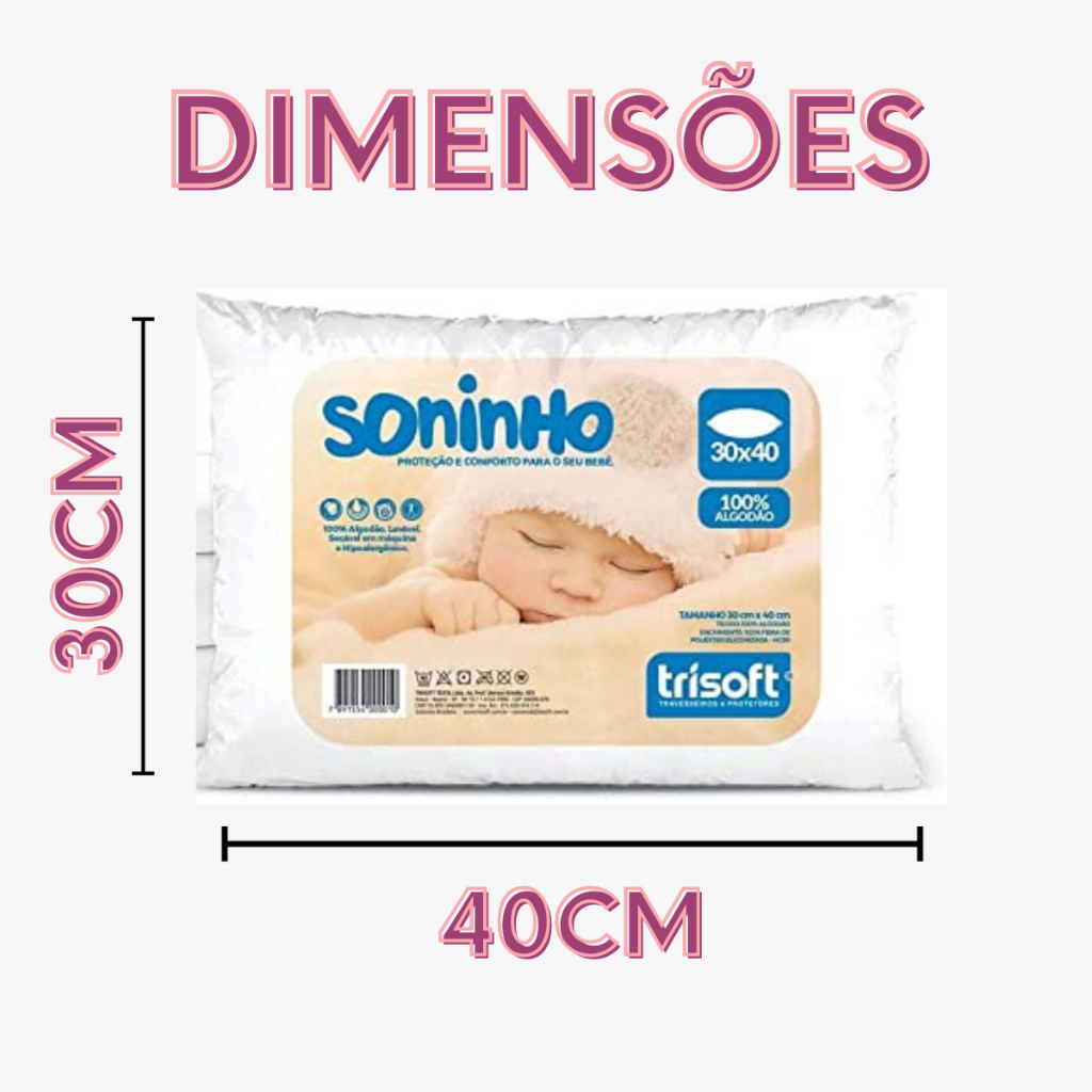 Travesseiro bebe Infantil 30x40 Percal anti alergico