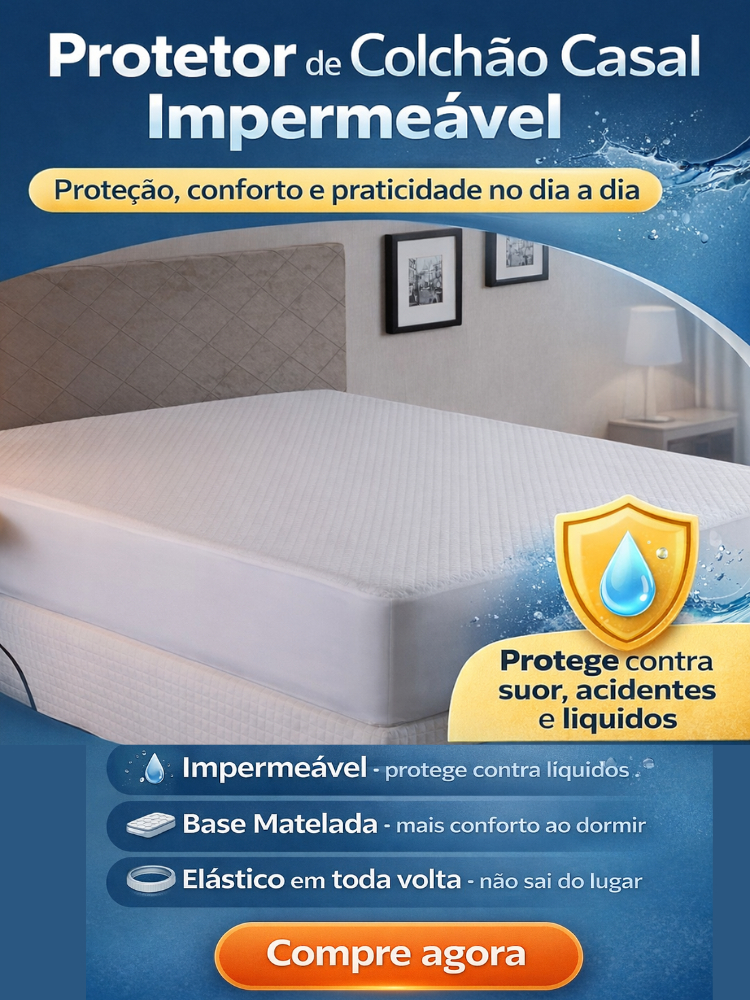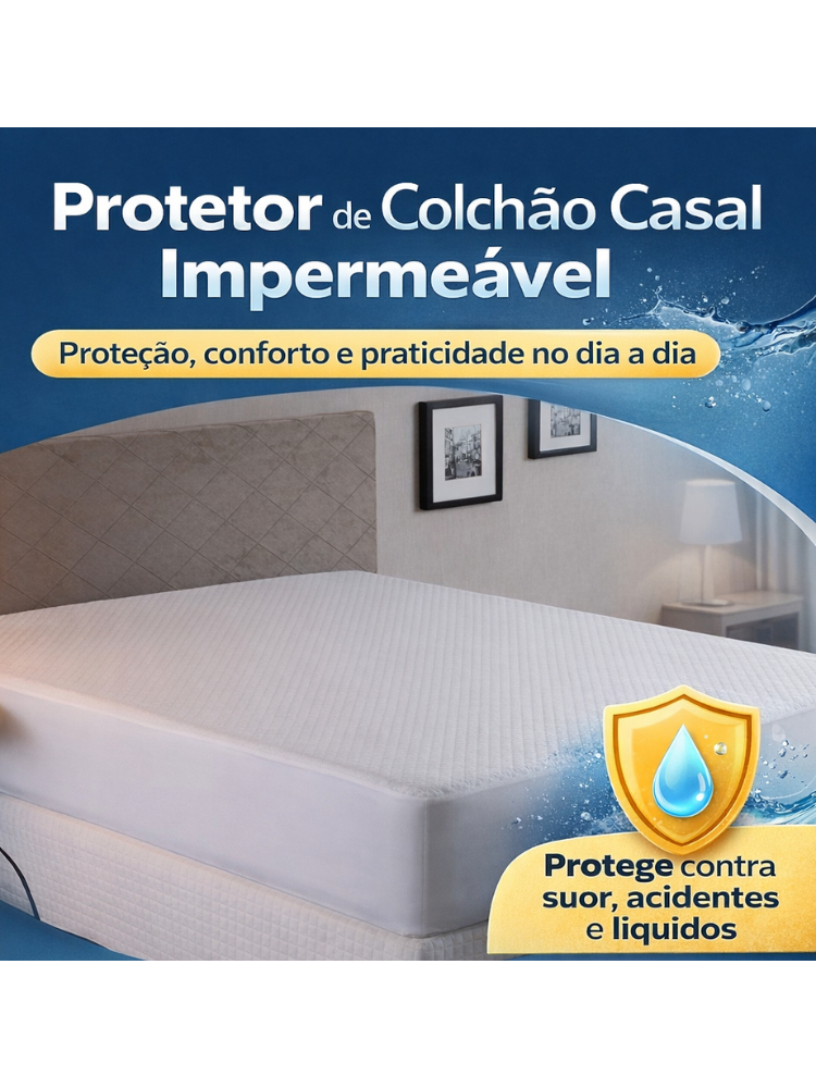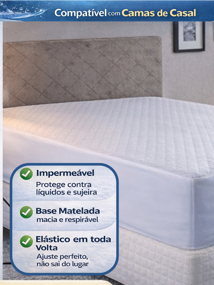 Capa de Colchão Impermeável Casal Branco Matelado Protetor Box Com Elástico