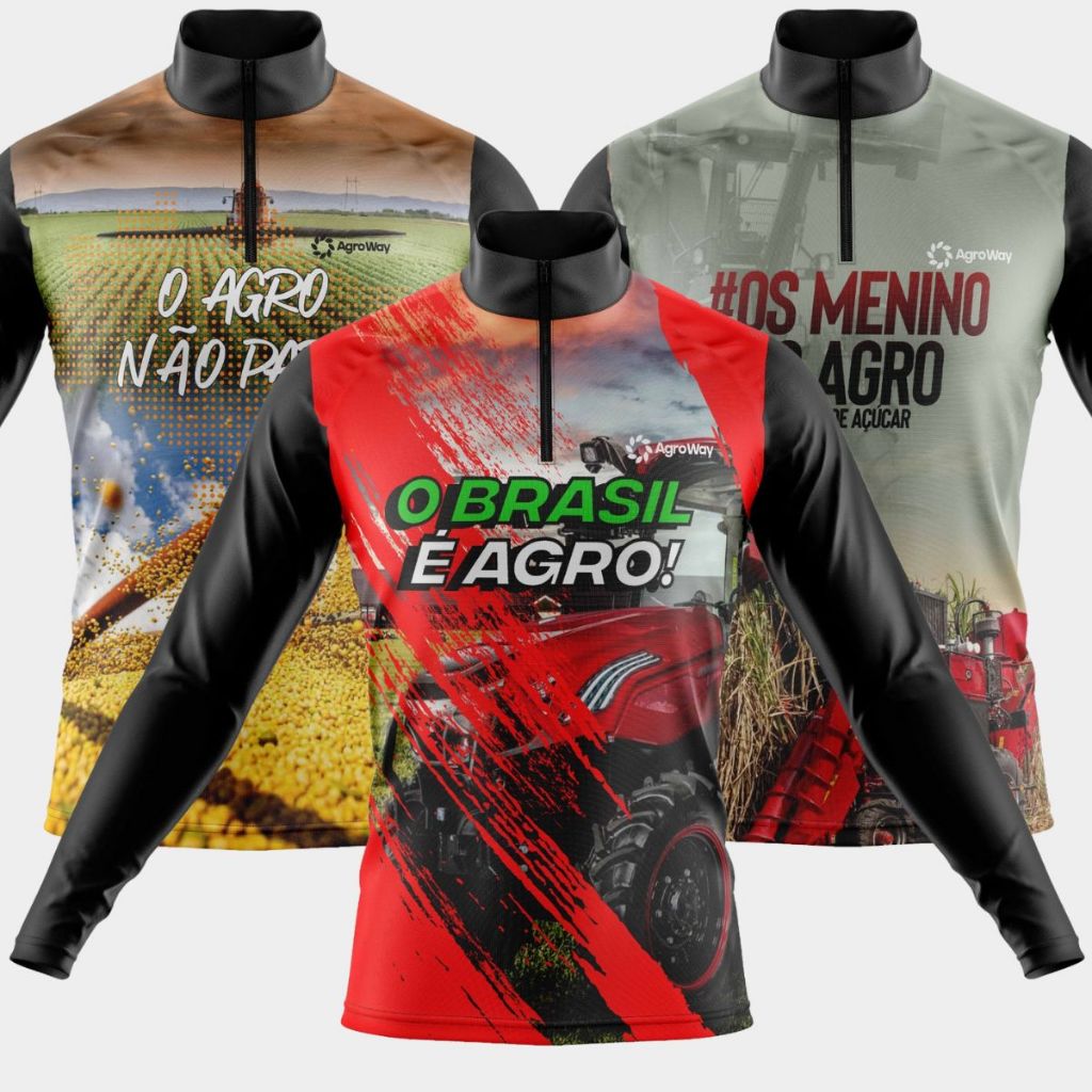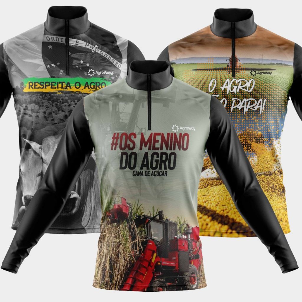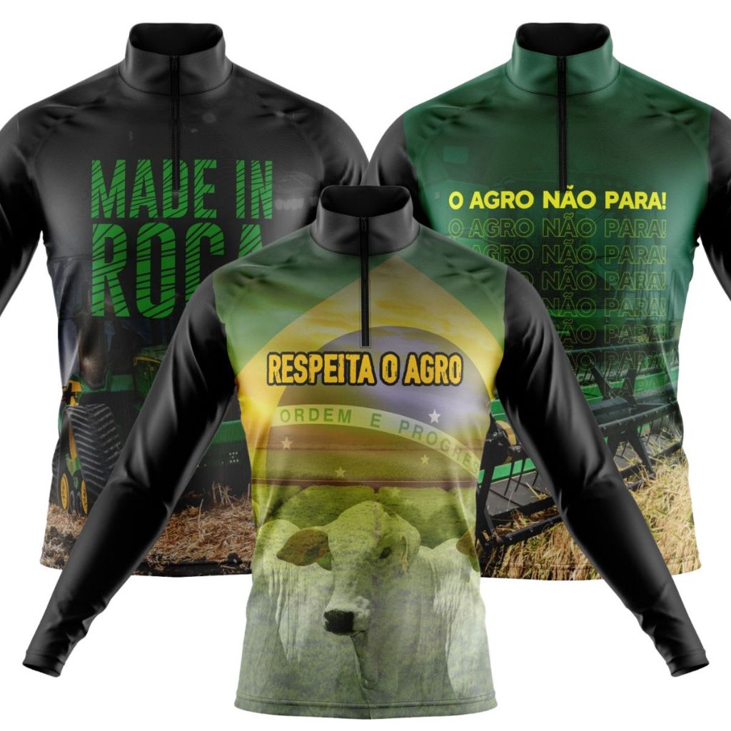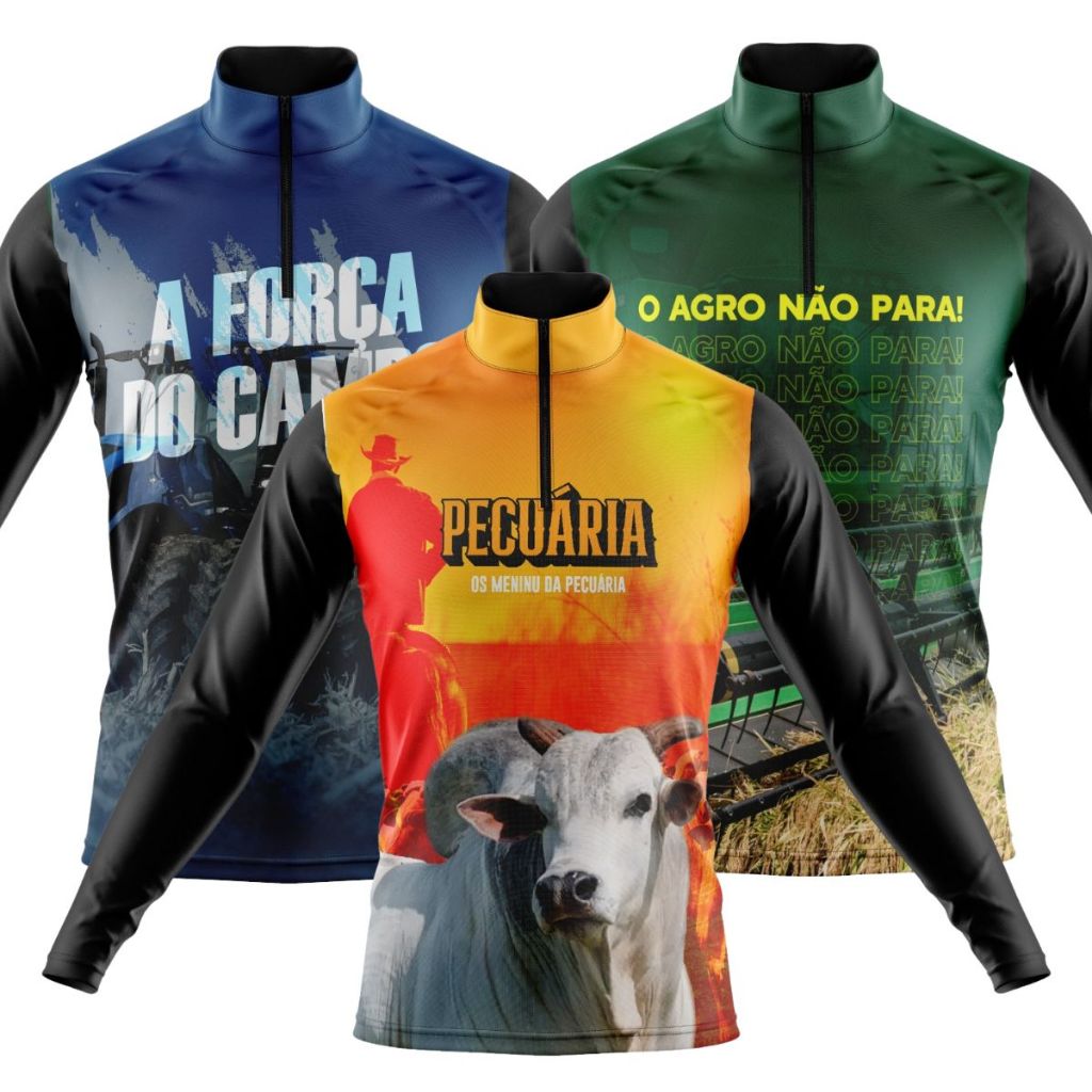 Kit 3 Camisas Camiseta Agro Masculina Blusa Térmica Proteção Solar UV Manga Longa Boi Trator