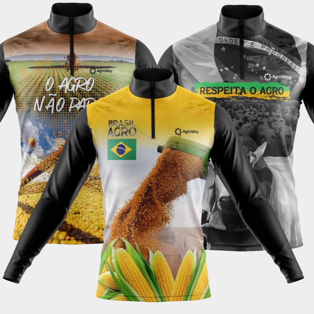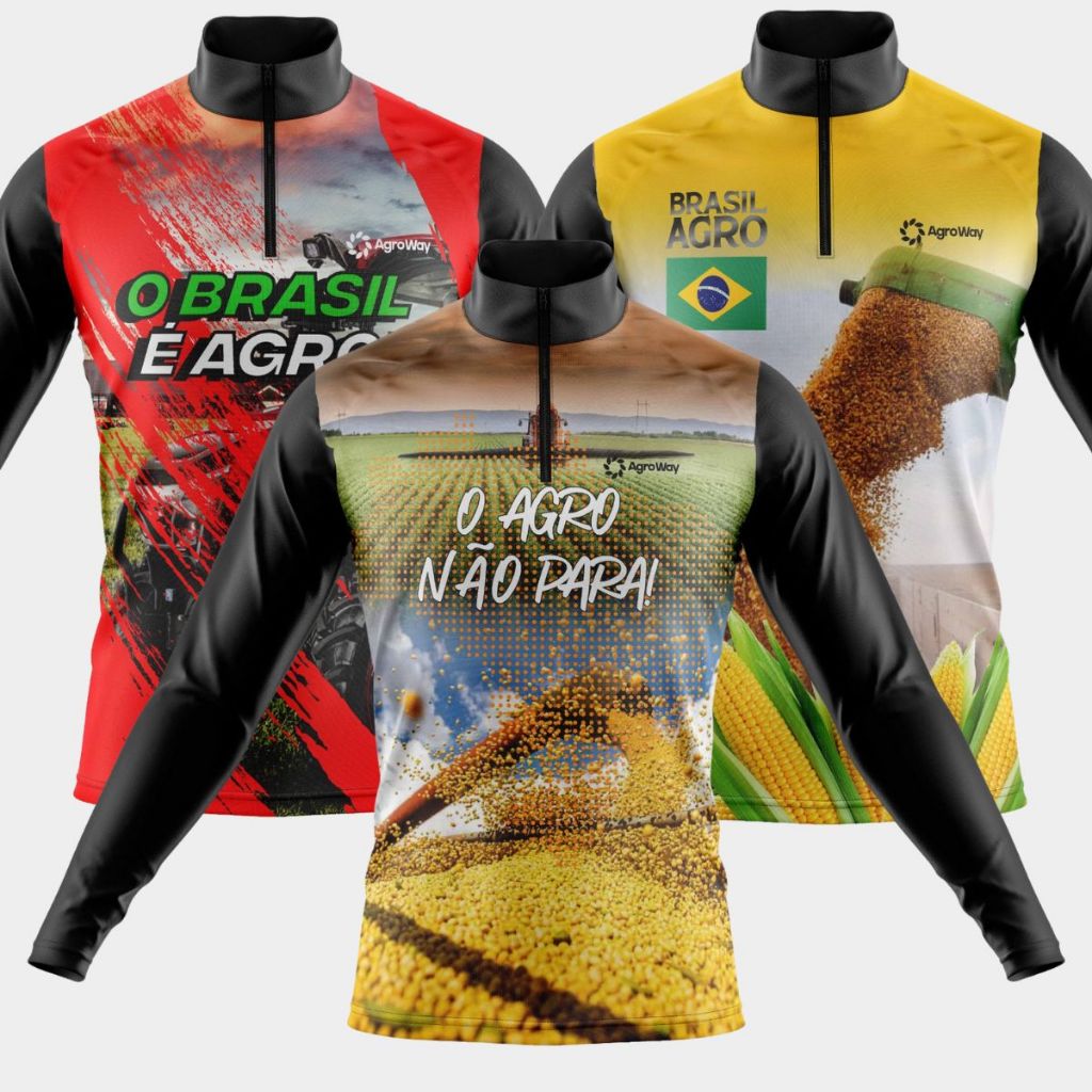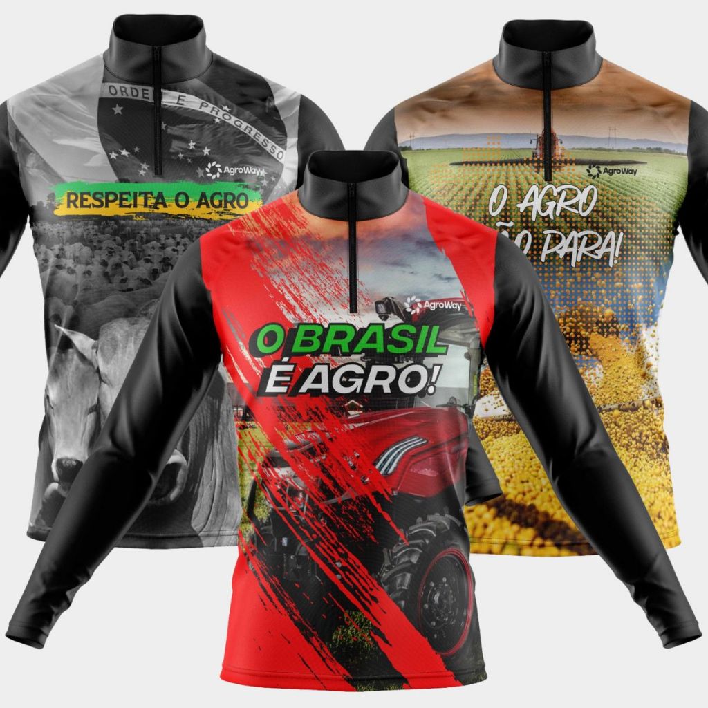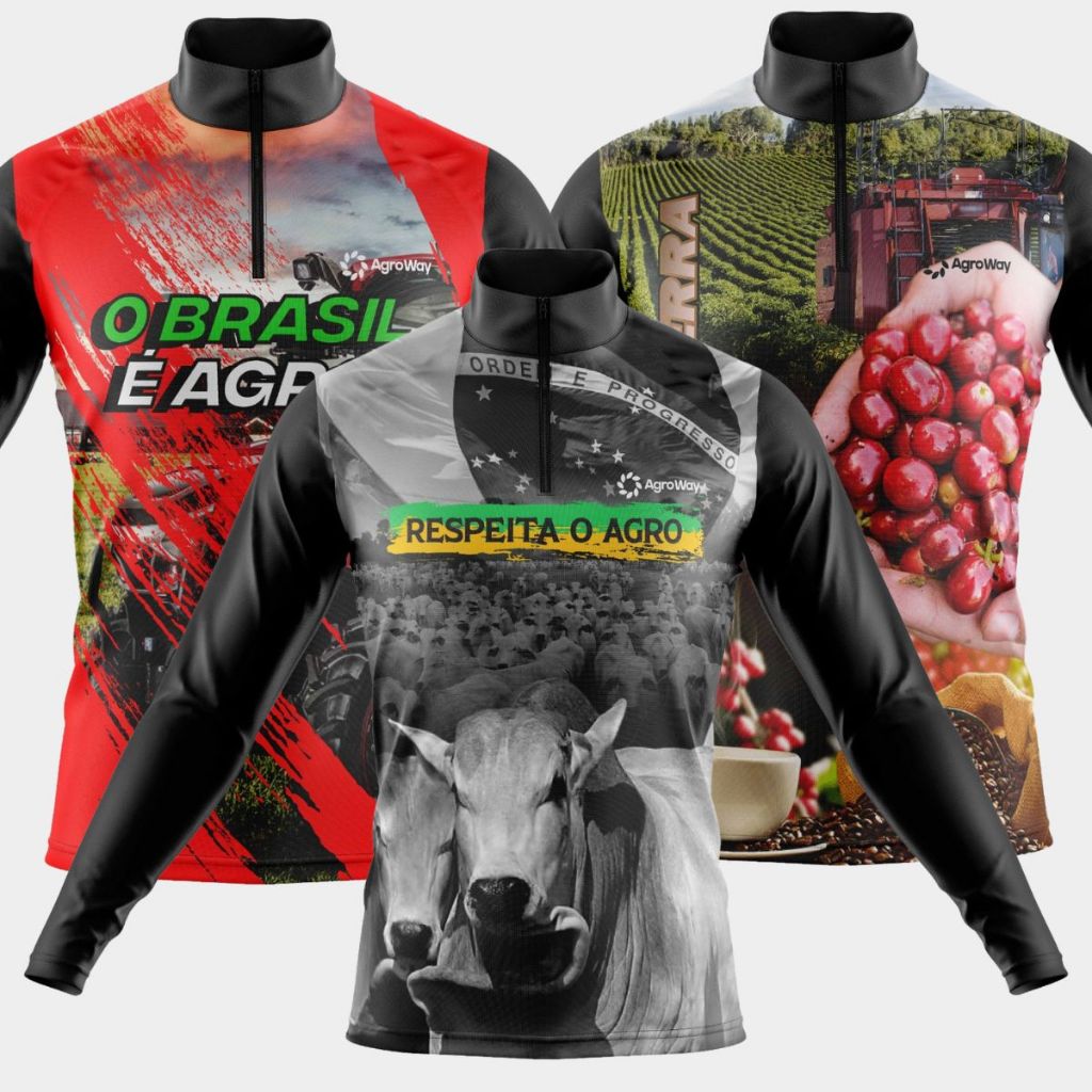 Kit 3 Camisas Camiseta Agro Masculina Blusa Térmica Proteção Solar UV Manga Longa Boi Trator