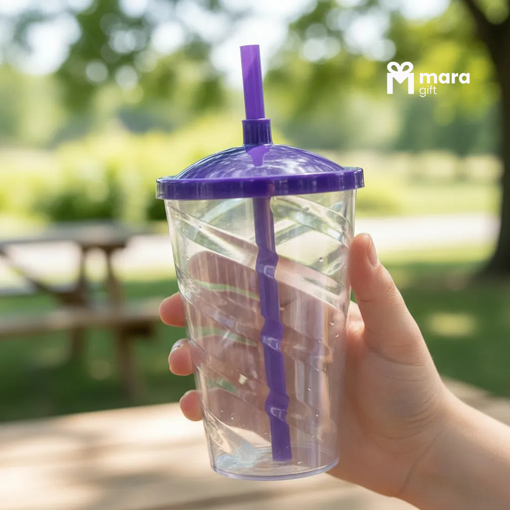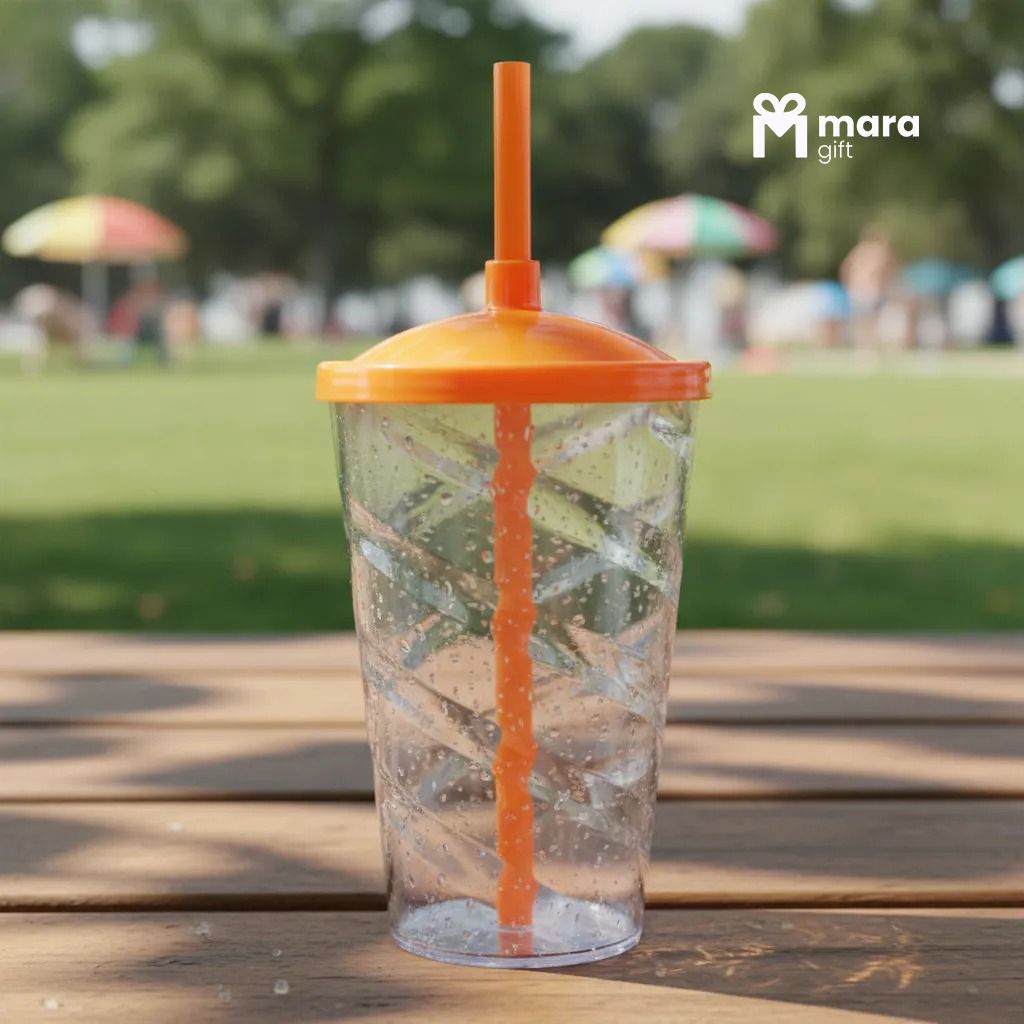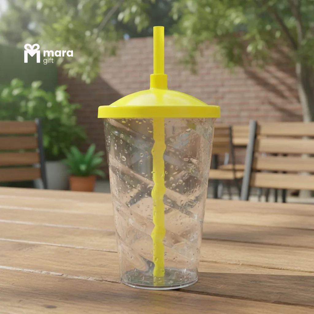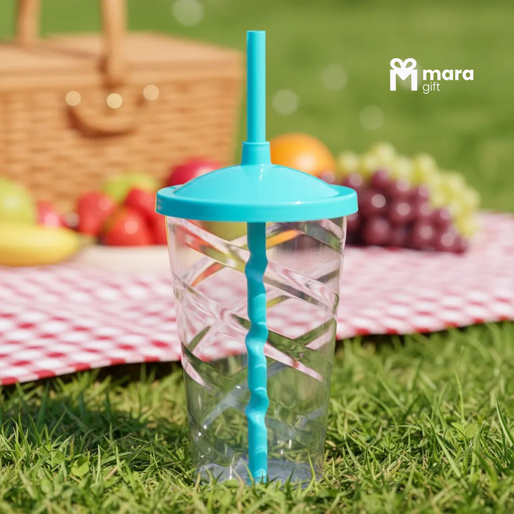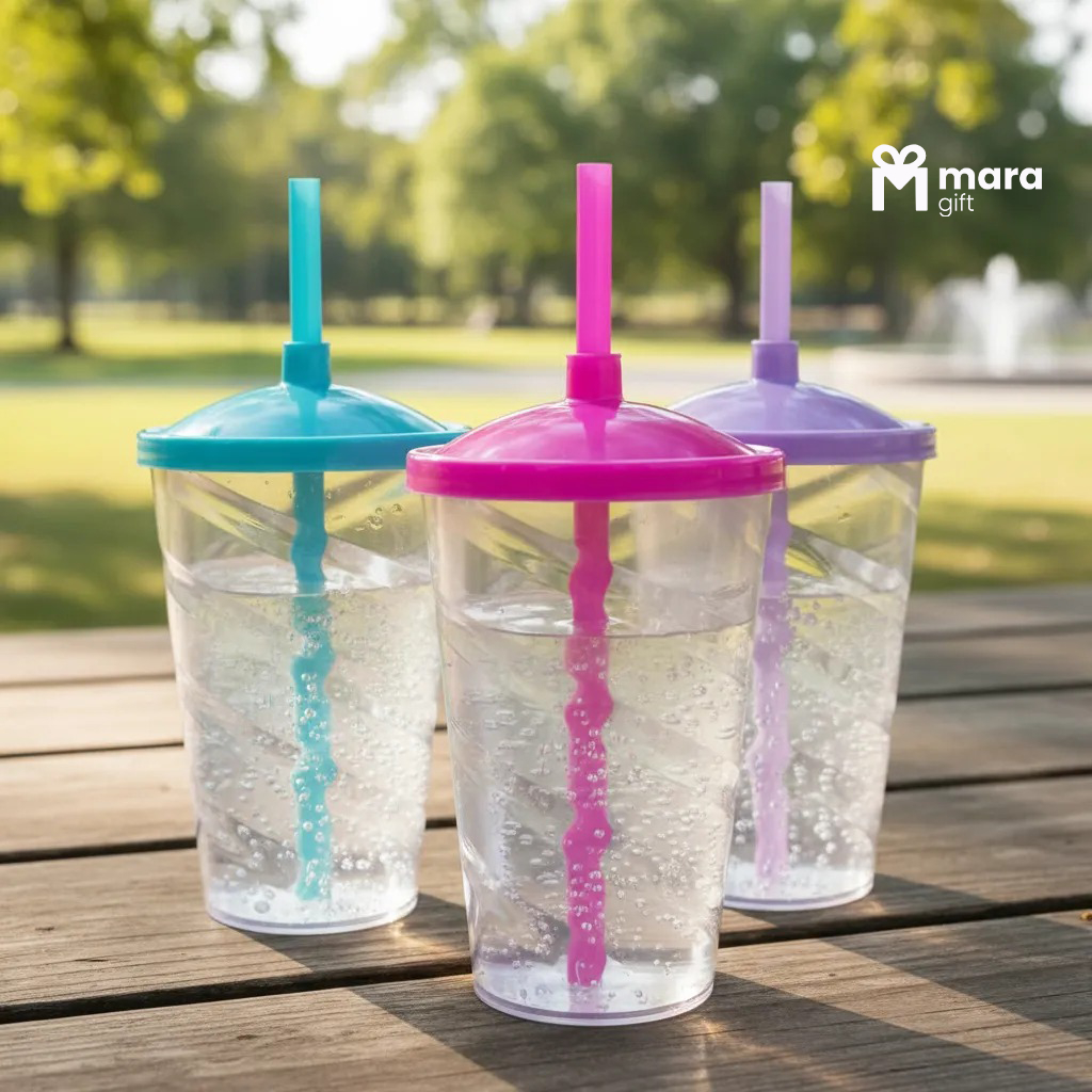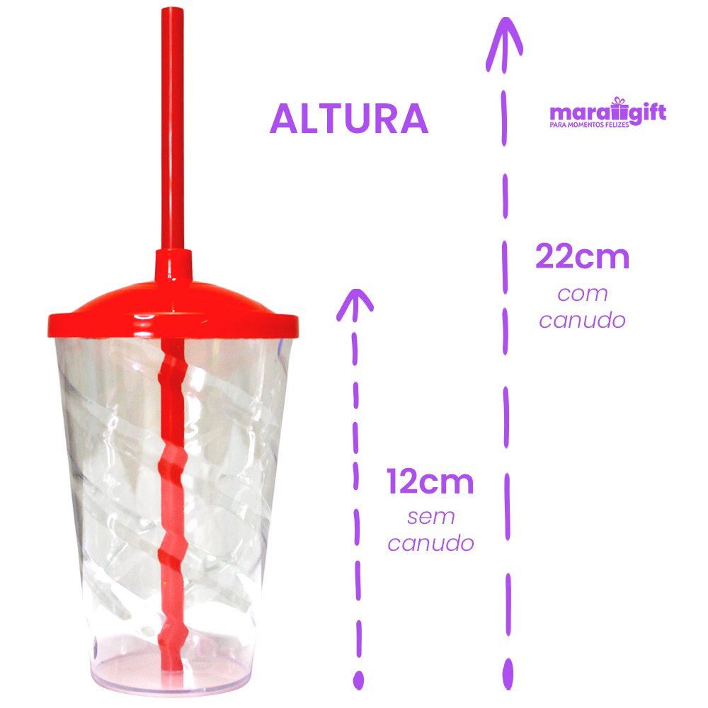 50, 60, 75, 100 Copos Cristal Twister 400ml, Para Festas, Transparentes Com Tampa E Canudo coloridos