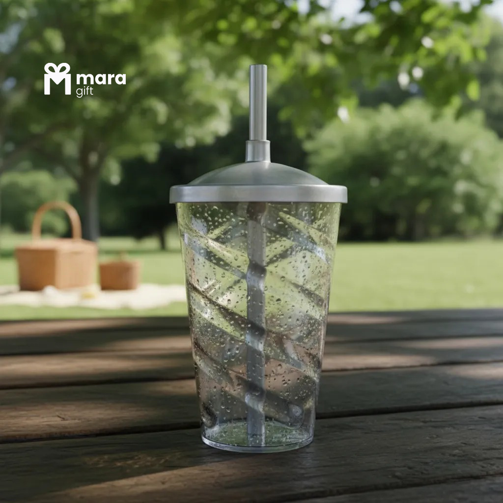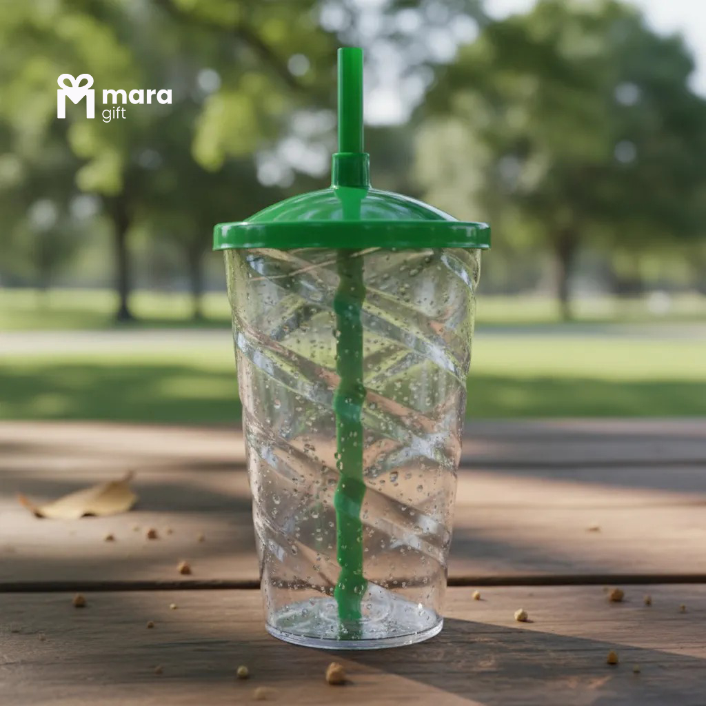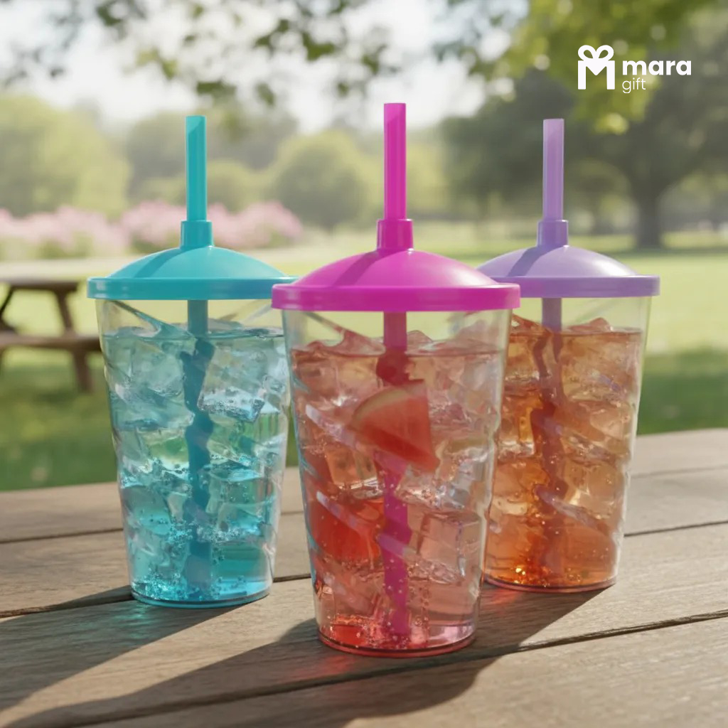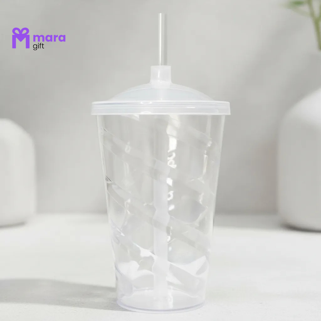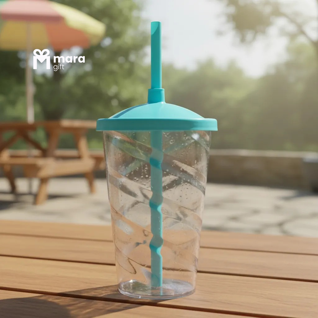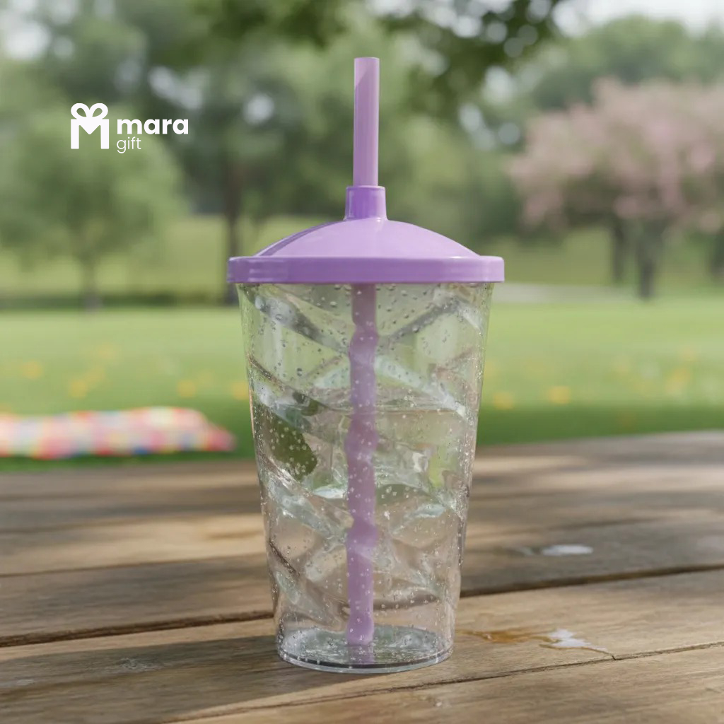 50, 60, 75, 100 Copos Cristal Twister 400ml, Para Festas, Transparentes Com Tampa E Canudo coloridos