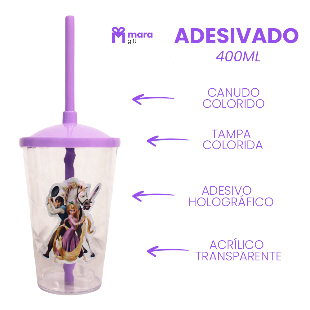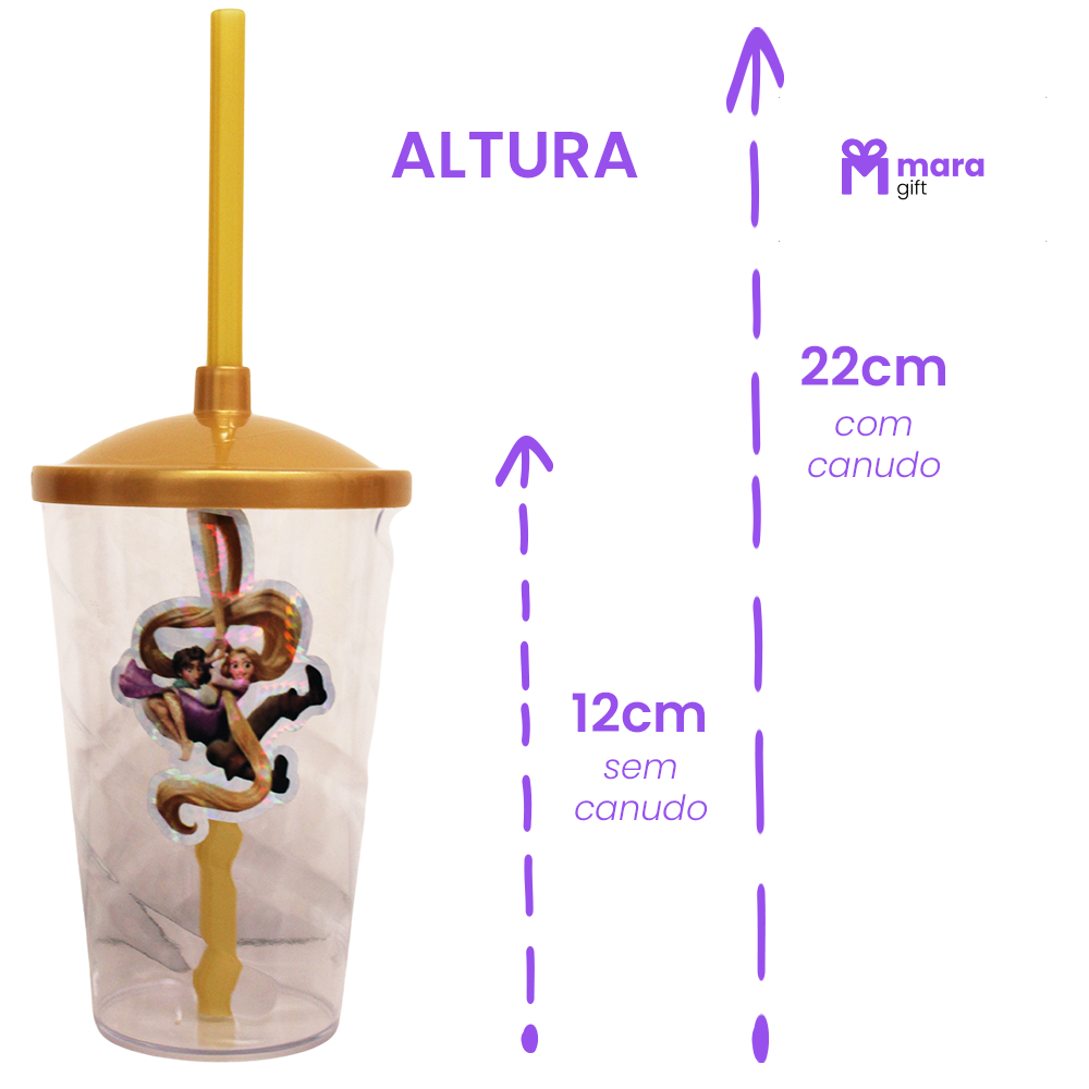 15 Copos Twister Cristal com adesivo ENROLADOS RAPUNZEL 400ML