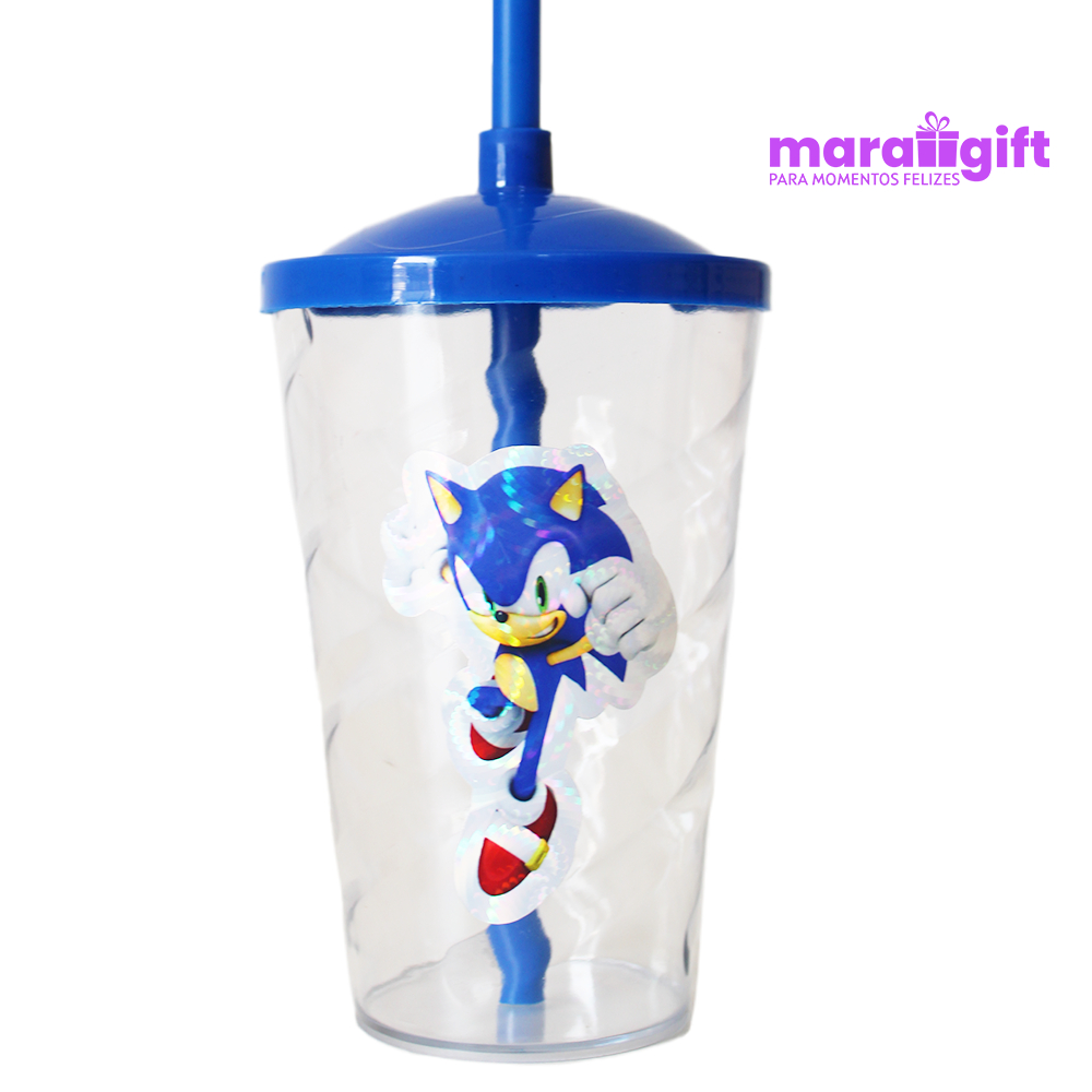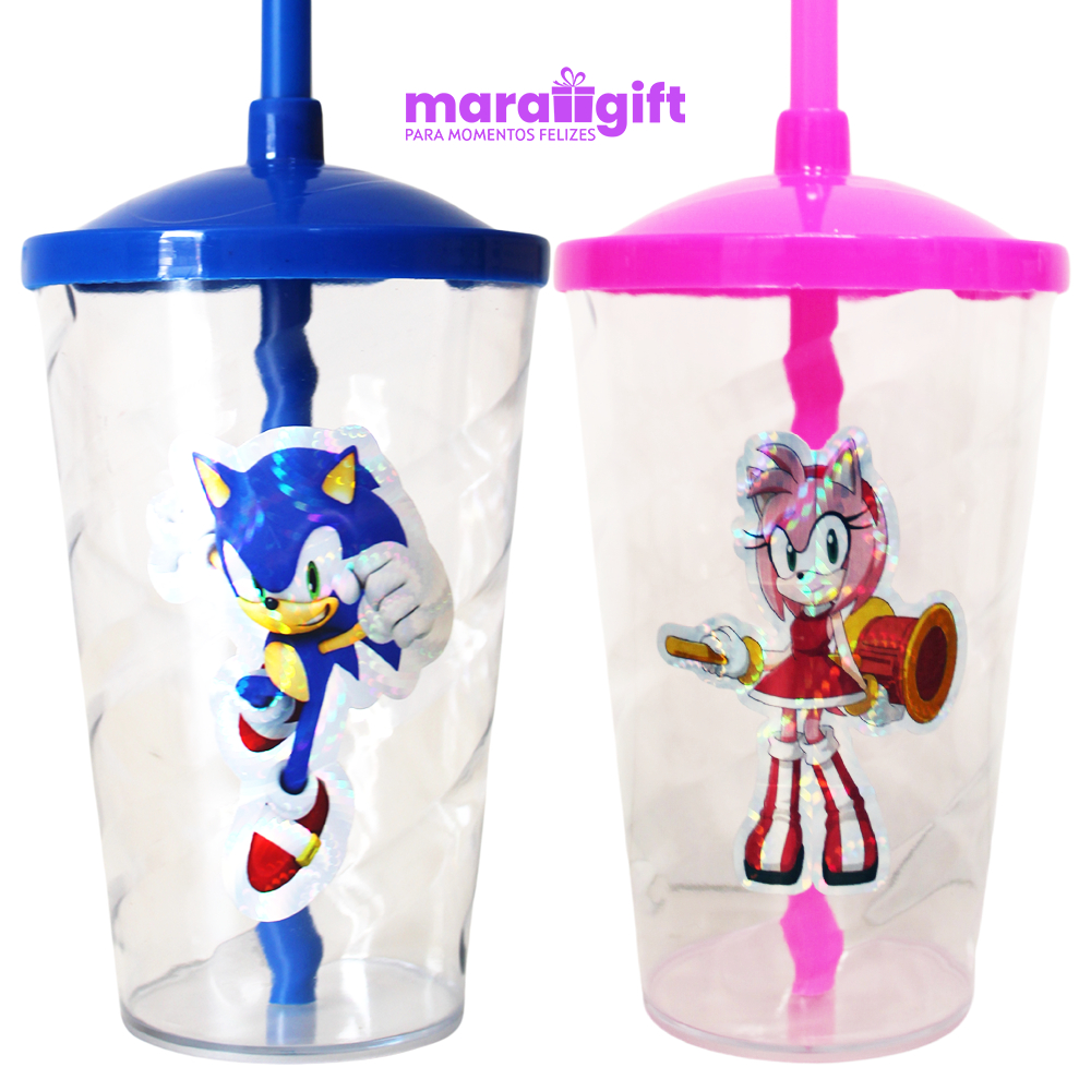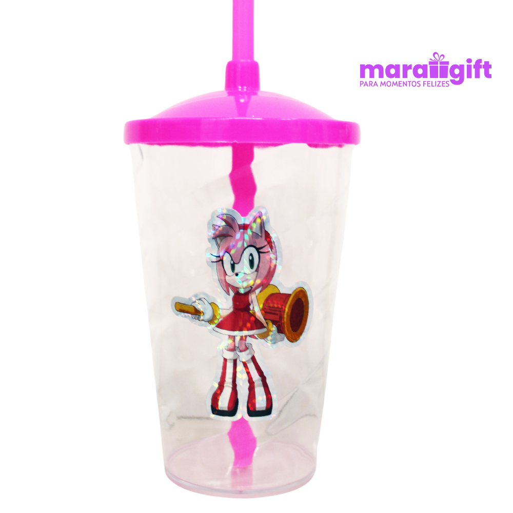 20 à 30 Copos Twister Cristal adesivo SONIC AMY ROSE 400ML, Transparente Com Tampa E Canudo