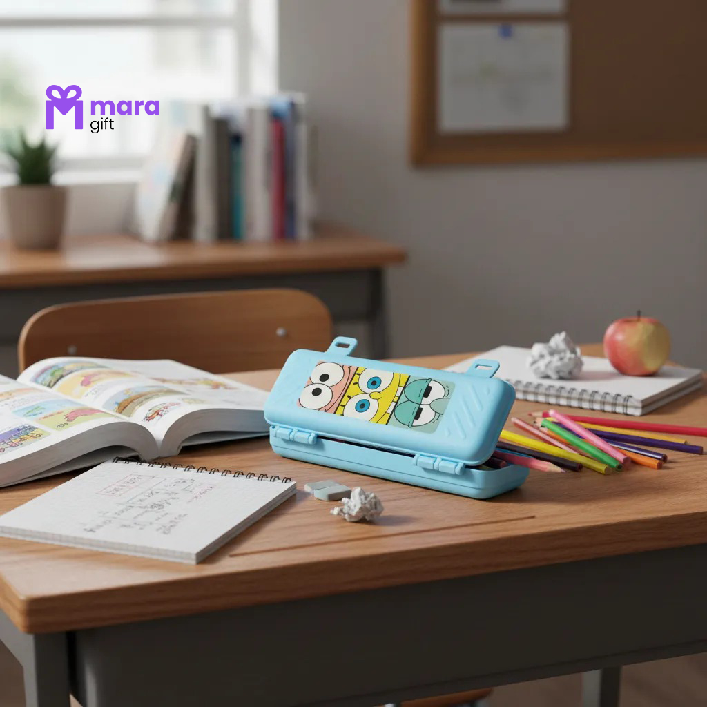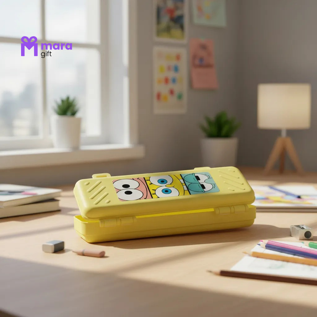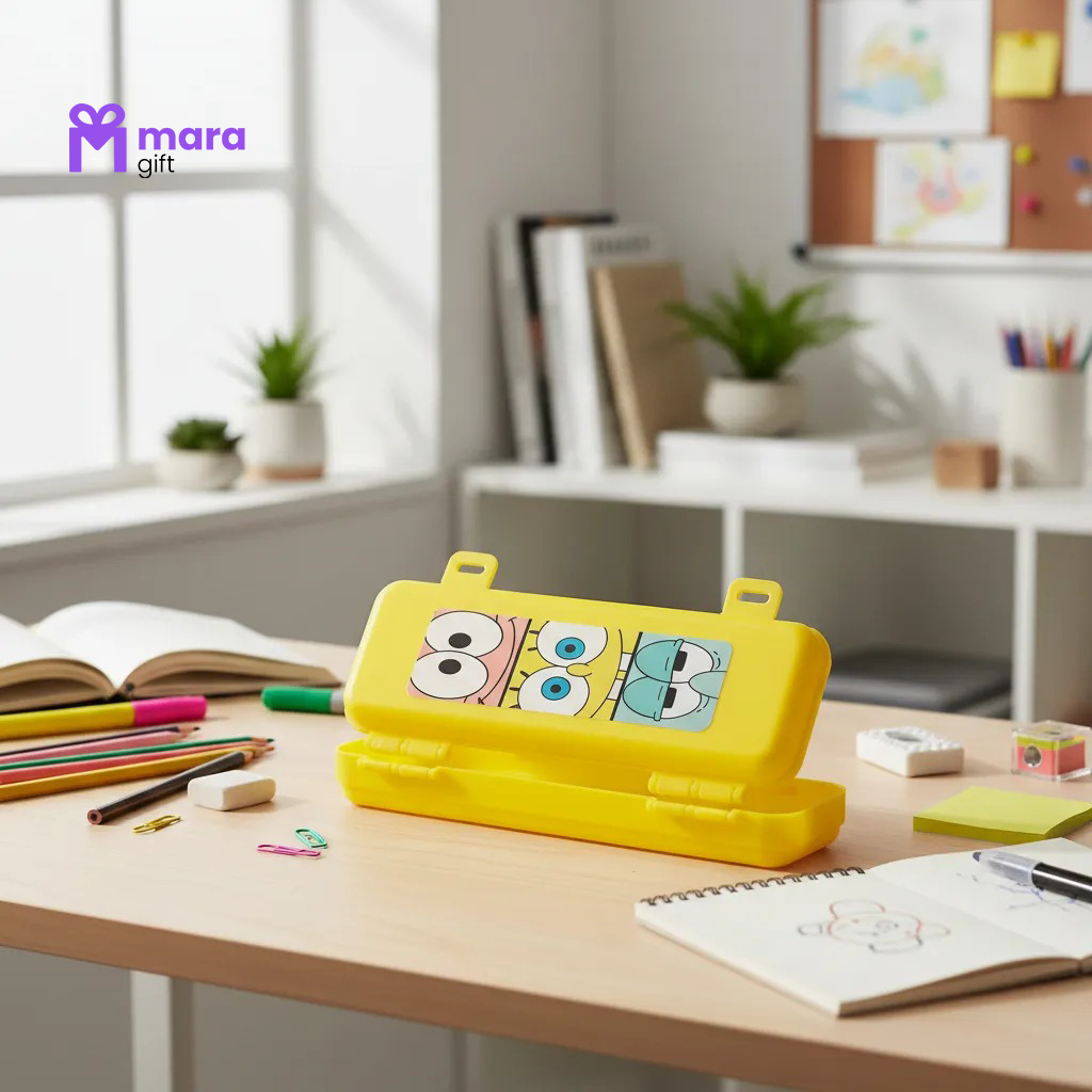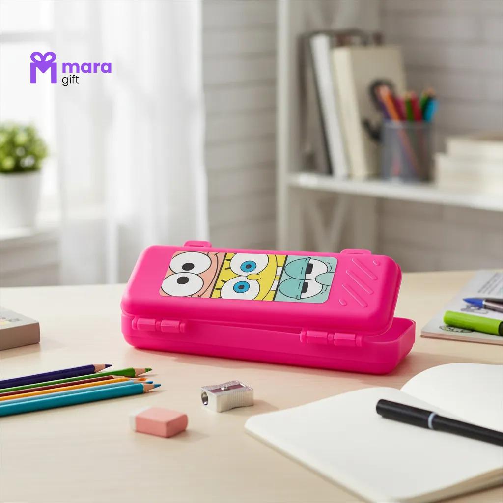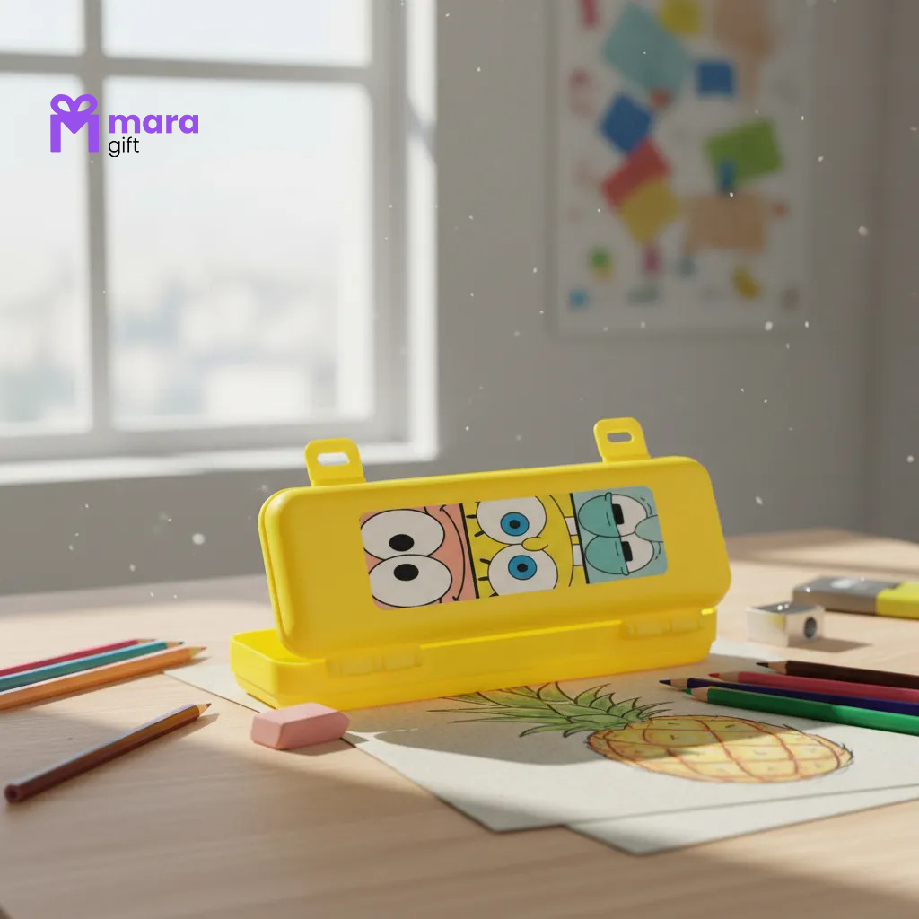 05 ESTOJOS DE PLÁSTICO COM ADESIVO DO BOB ESPONJA