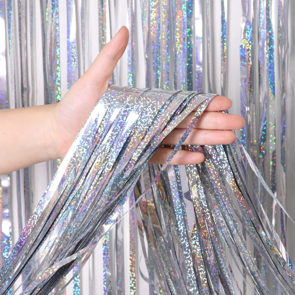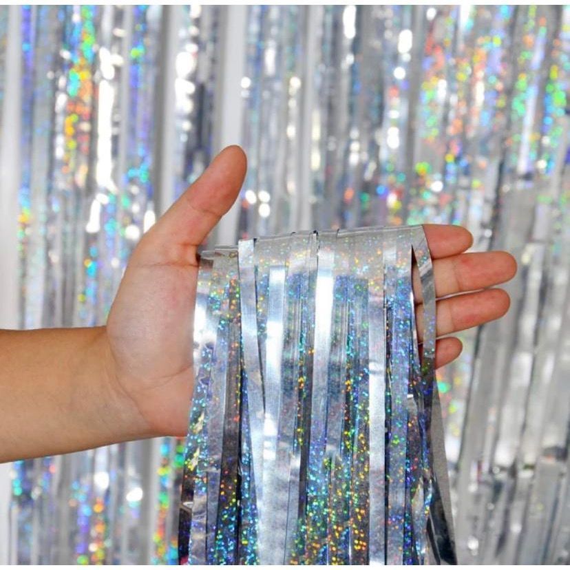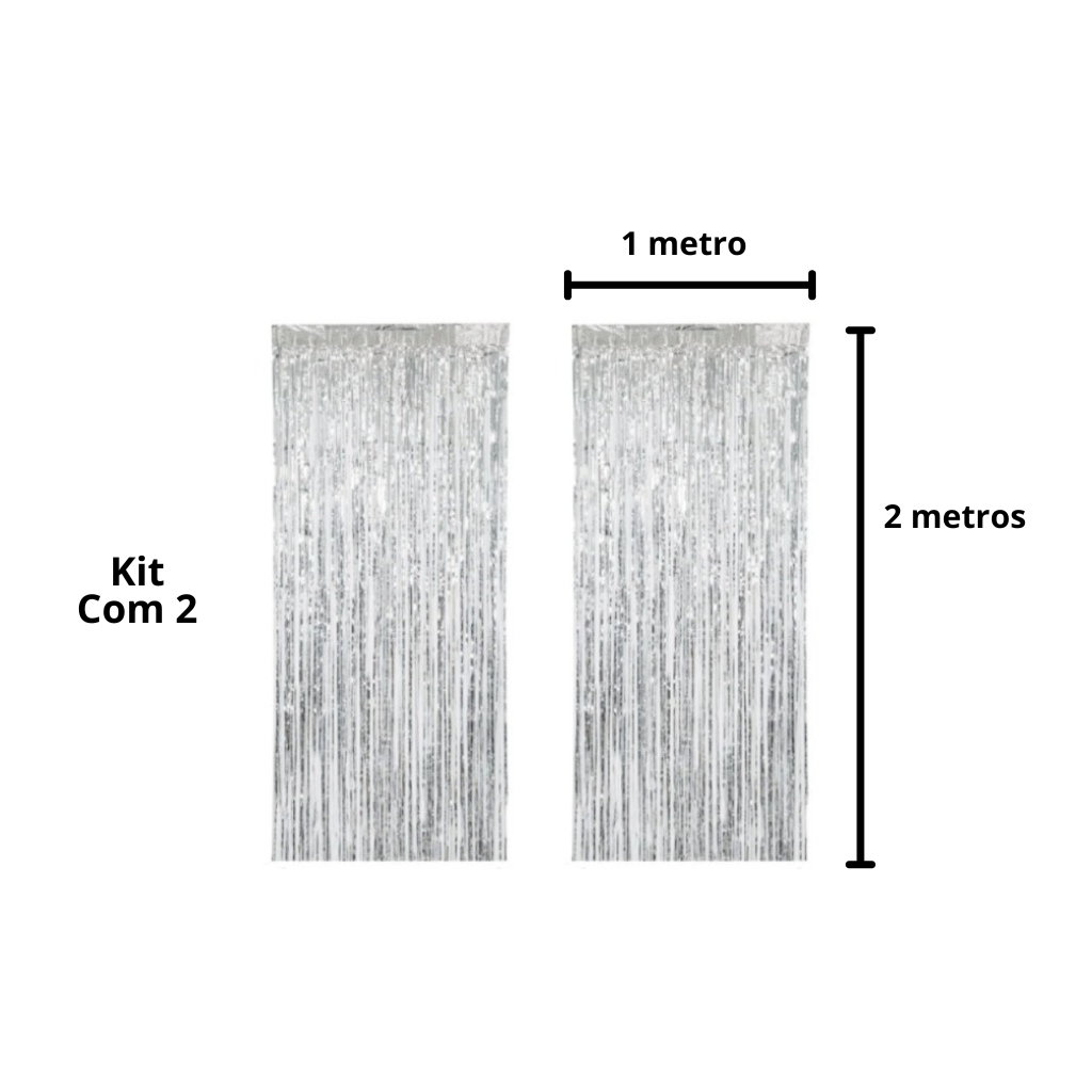 Cortina Metalizado Kit 2 Para Festa 1mx2m Decoração Fita Painel Holografica
