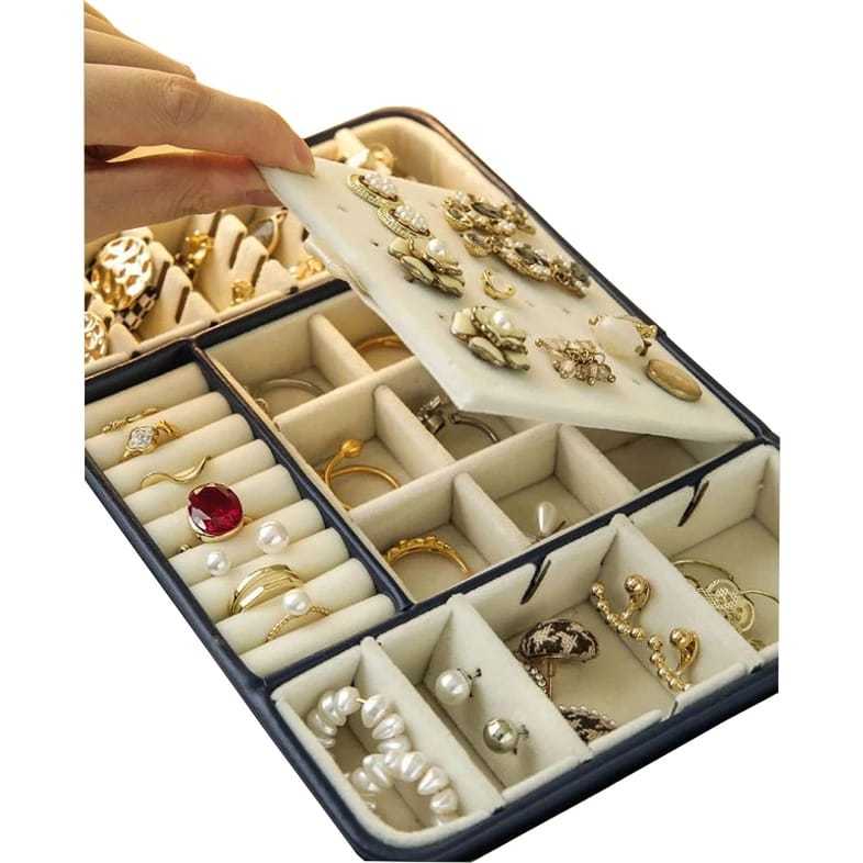 Bandeja Organizadora Porta Joias e Bijuterias em Veludo com Divisórias