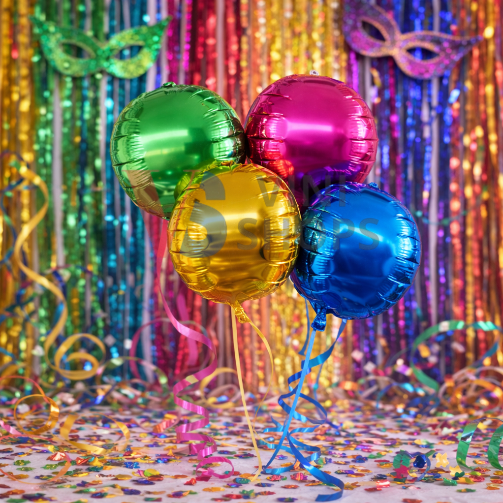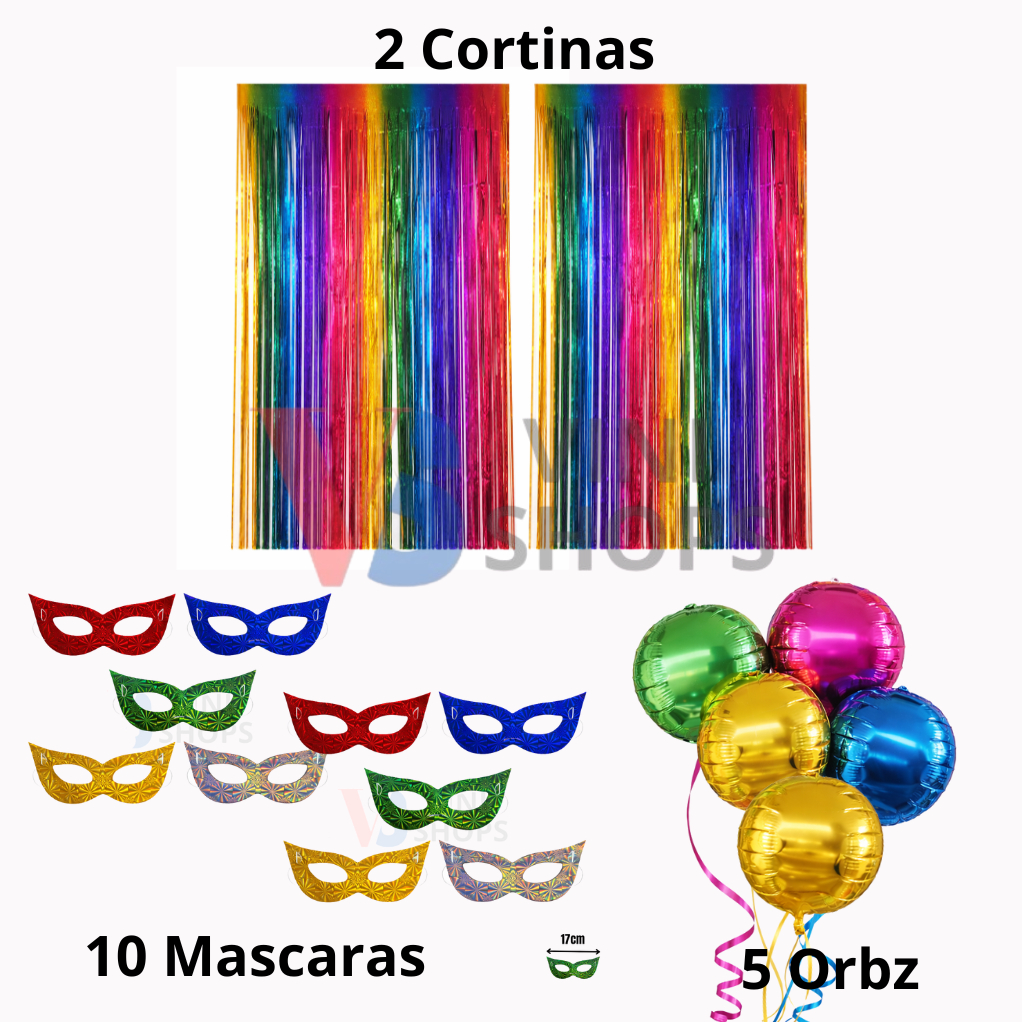 Kit Carnaval 2 Cortinas + 10 mascaras + 5 Balões Decoração