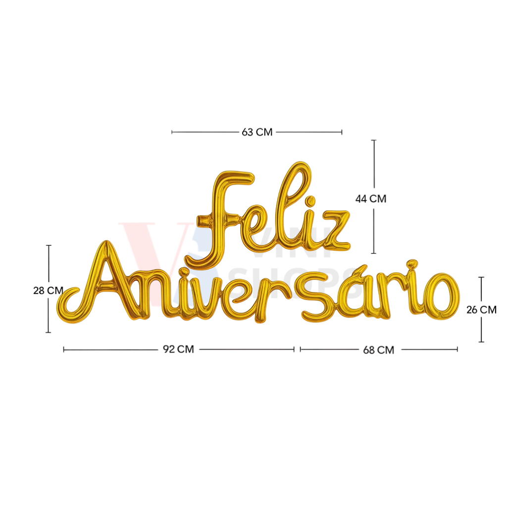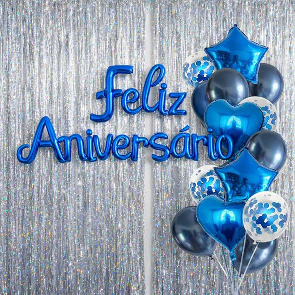 Kit Balão Metalizado FELZI ANIVERSARIO | Decoração de Festa Enfeite Decorativo Cursivo