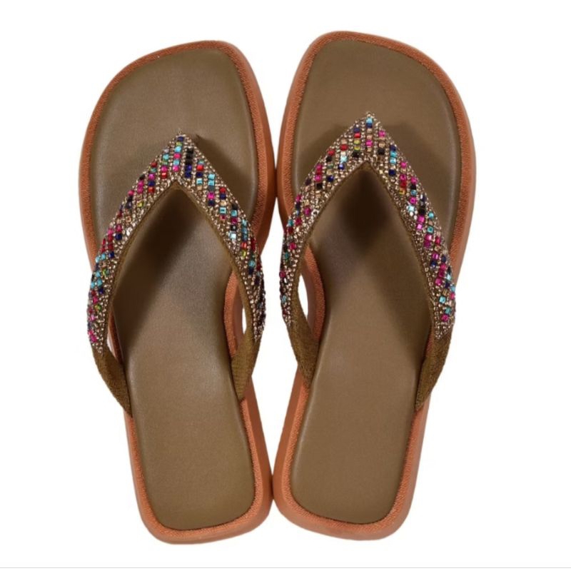 Sandália Feminina Flat Rasteirinha Cabedal V Com Stras Confortável