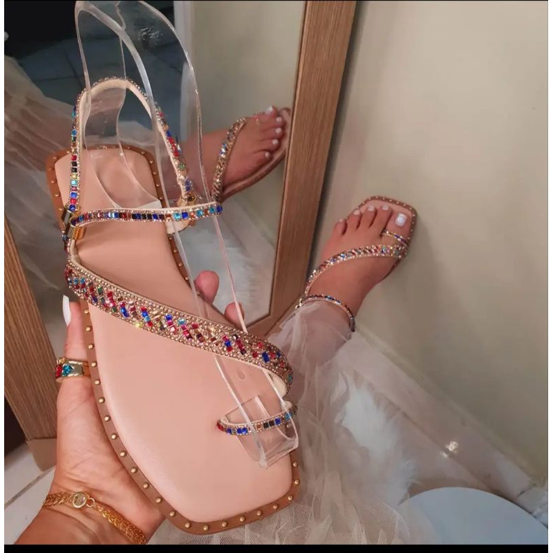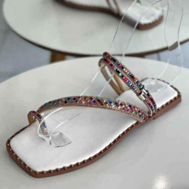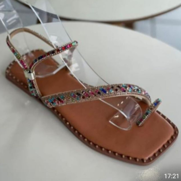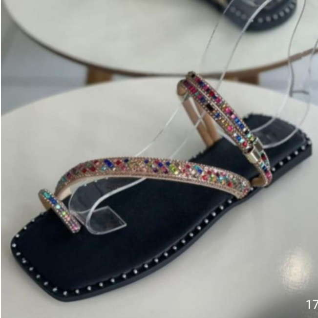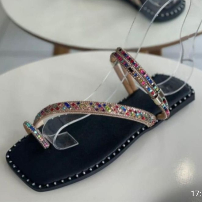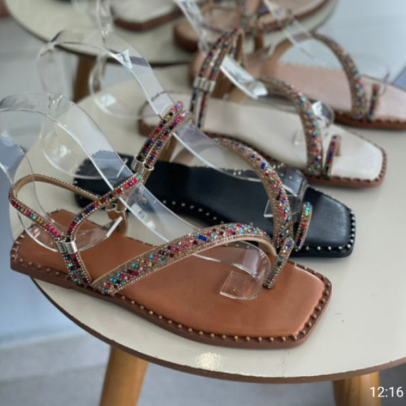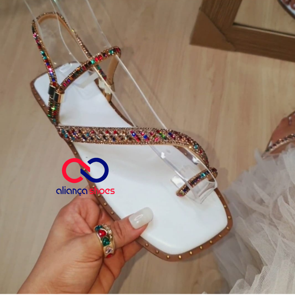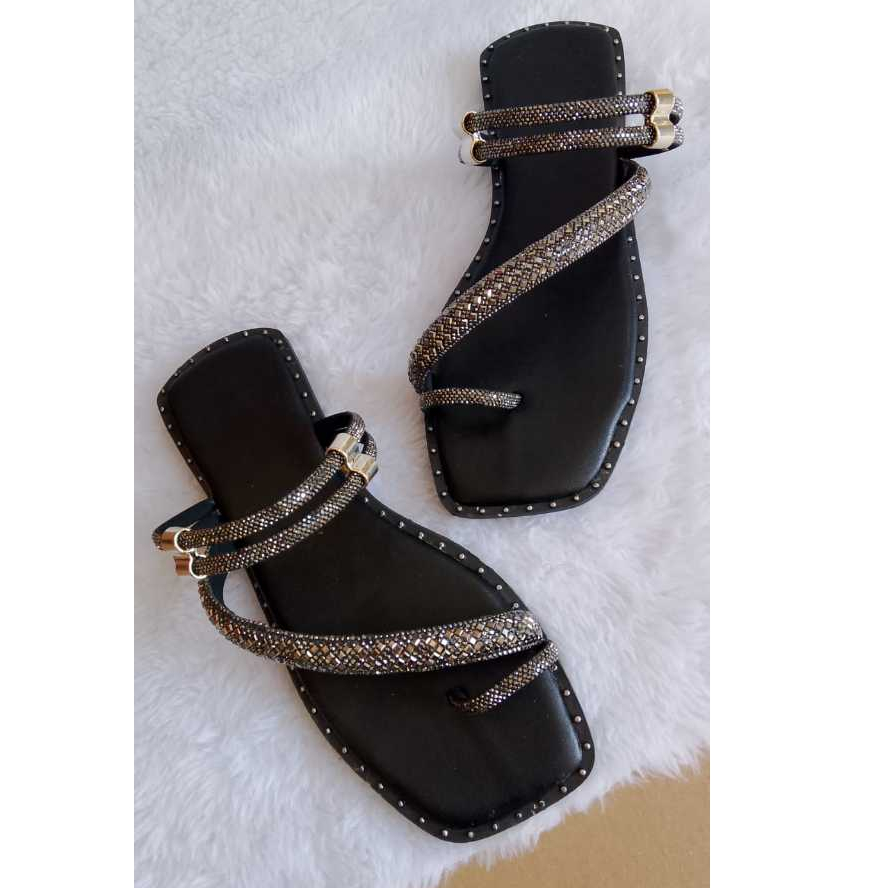 Sandália Feminina Rasteirinha Modelo 025 Stras Quadrado Super Lançamento