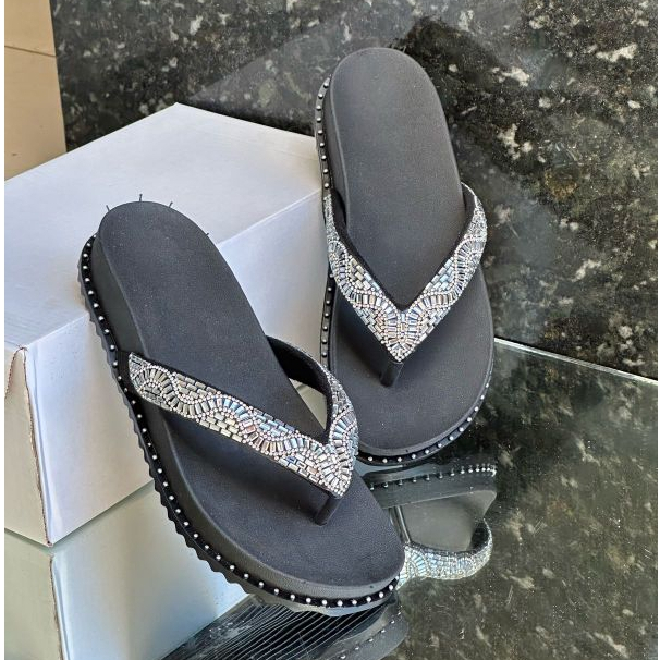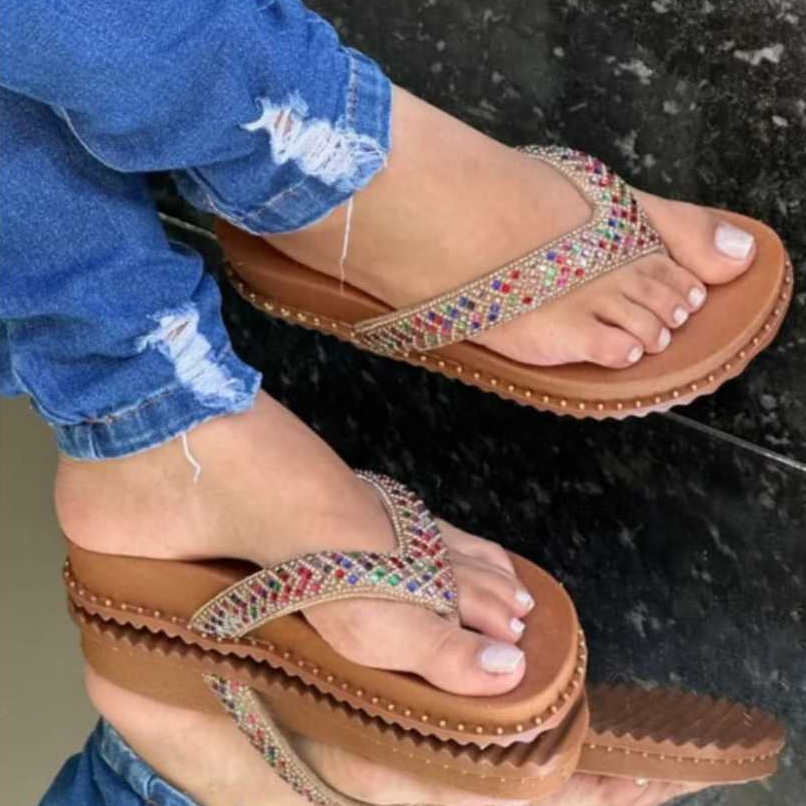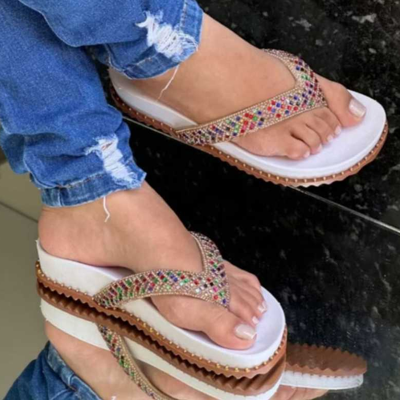 Sandália Feminina Papete Modelo Lizy Estilo Chinelo Com Stras Lançamento