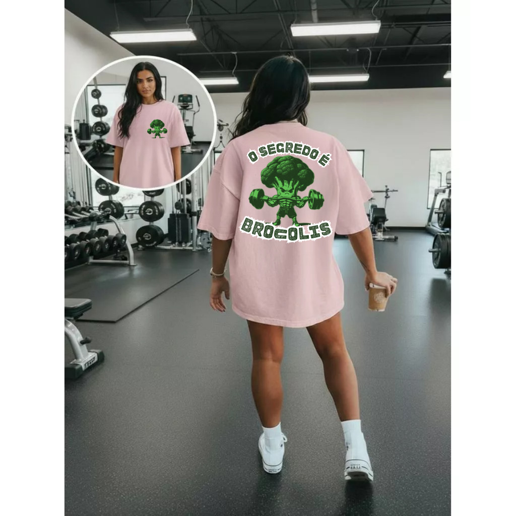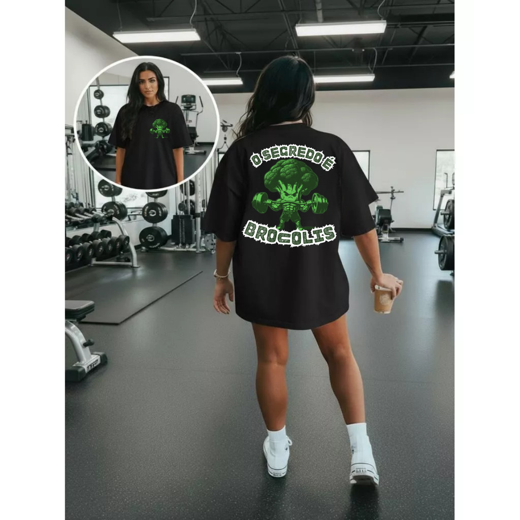 Camiseta Camisa 100% Algodão Gym Treino Academia Musculação Fitness Oversized O Segredo é o Brocolis