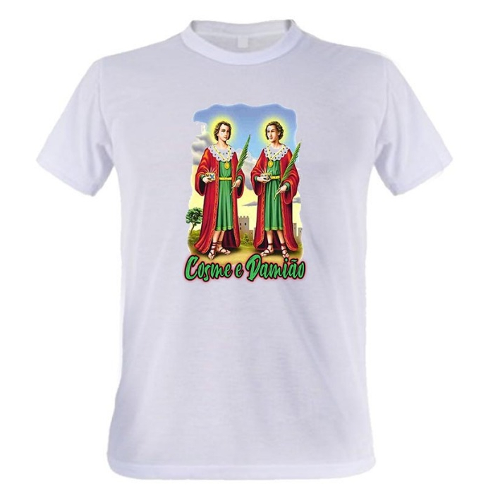 1 Camiseta São Cosme e Damião Imagem Tradicional Camisa Cosme e Damião Religiosa