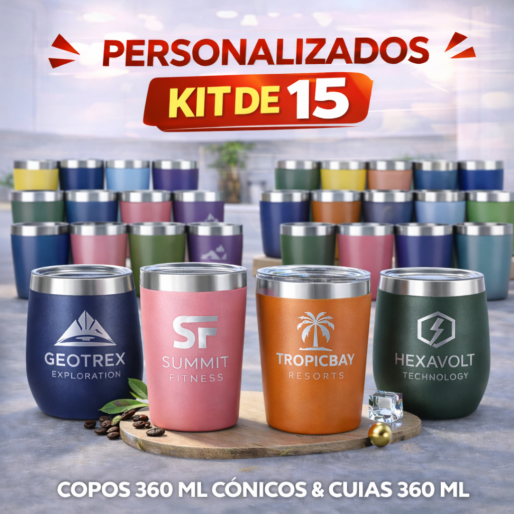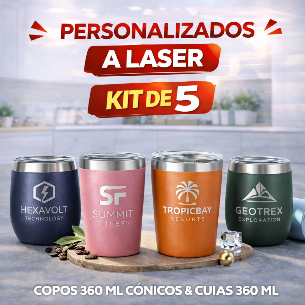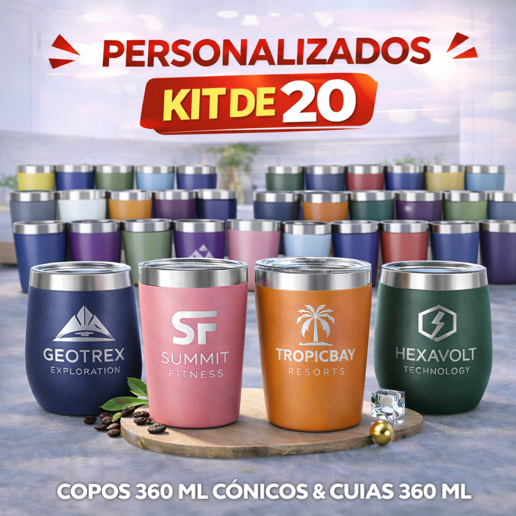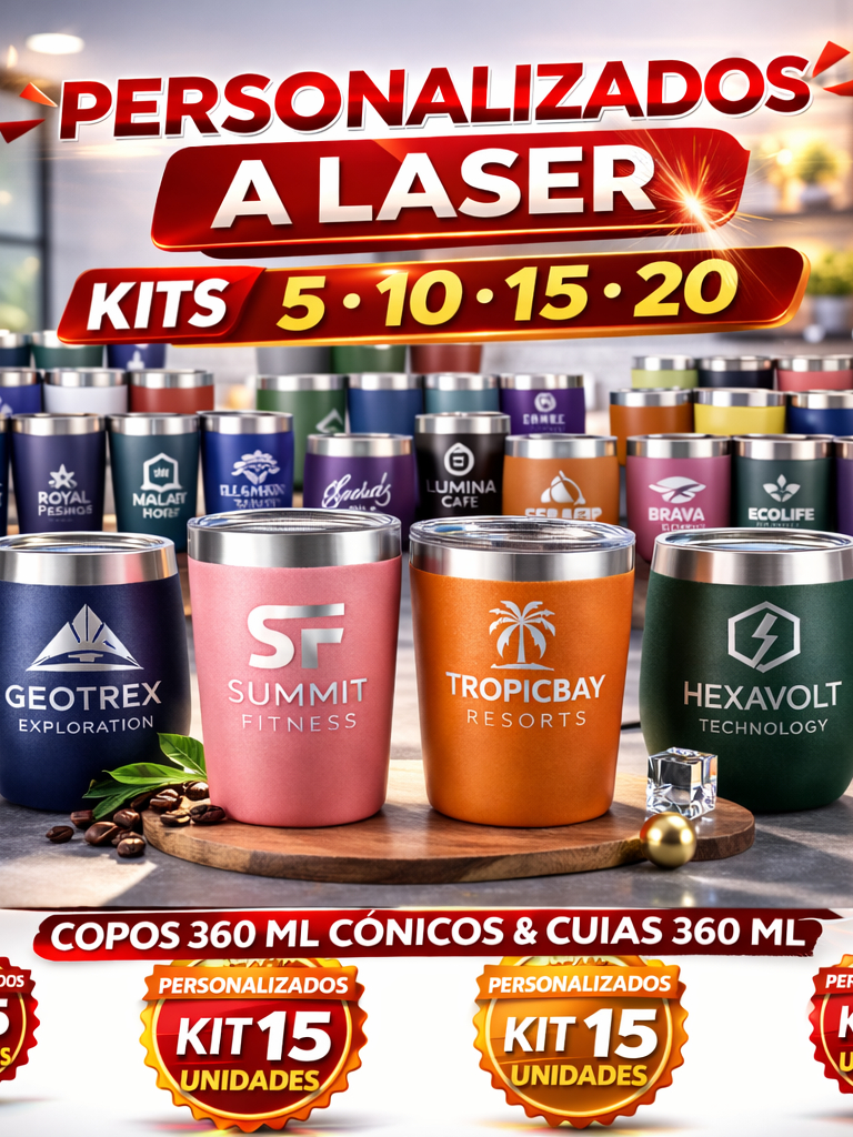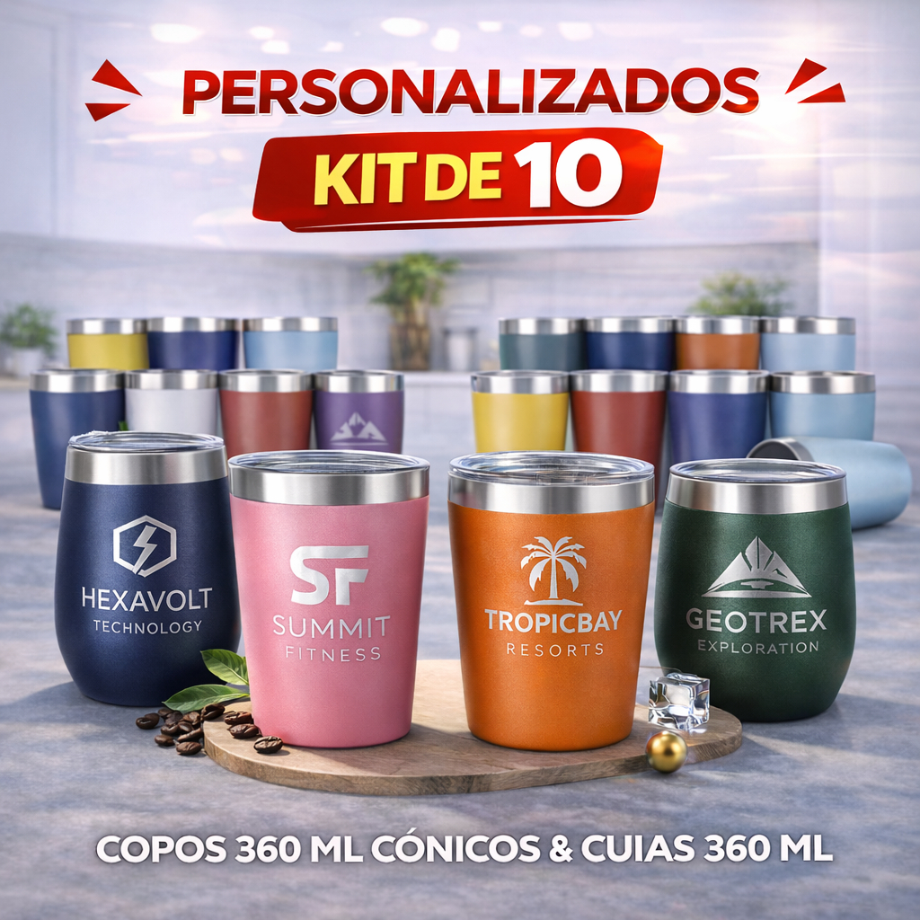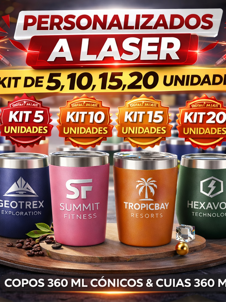 Kit Copo Térmico Cônico 360ml Personalizado a Laser