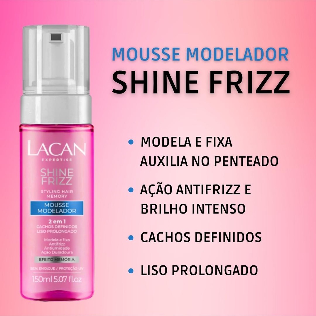 Mousse Modelador 2 Em 1 Shine Frizz Lacan 150ml Cacho E Liso