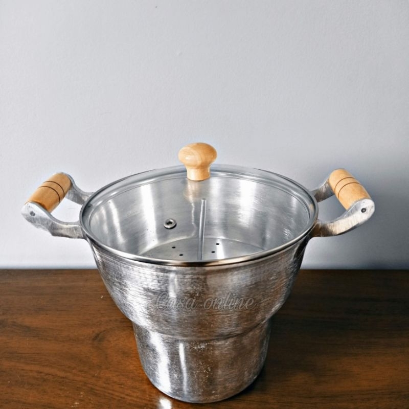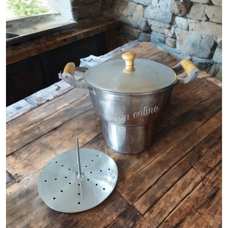 Cuscuzeiro De Alumínio Batido Fundido - 2 Litros- 20cm - Cozinhe alimentos á vapor.