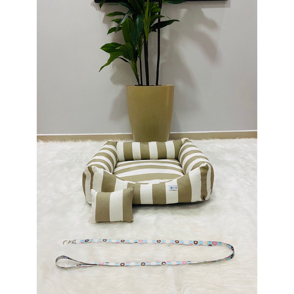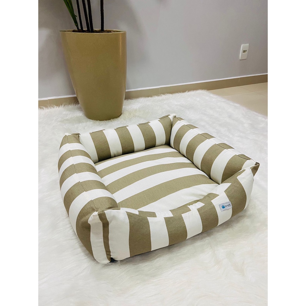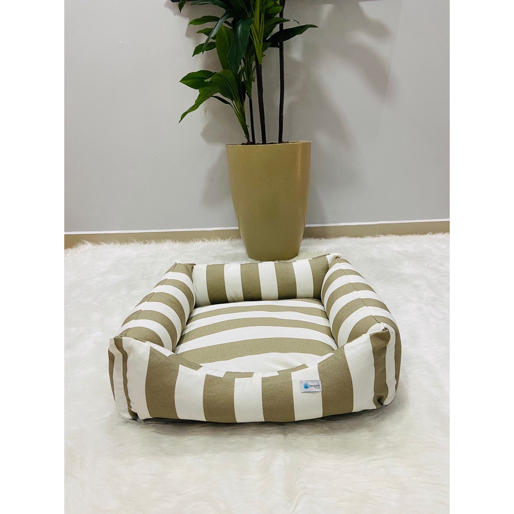 Cama Caminha Pet para Cães e Gatos com Zíper Bege Listrada