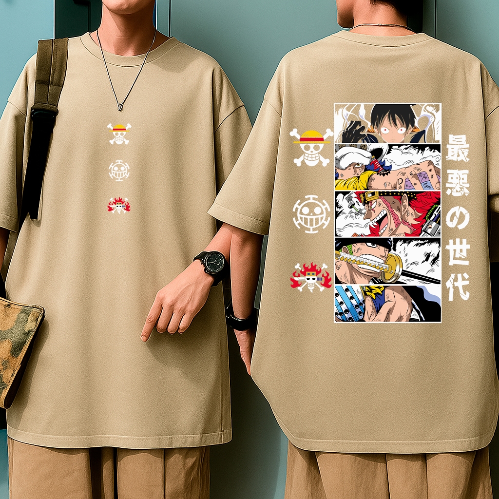 Camisa Oversized Anime Adulto Infantil Camiseta One Piece Piratas Mar Mangá Unissex