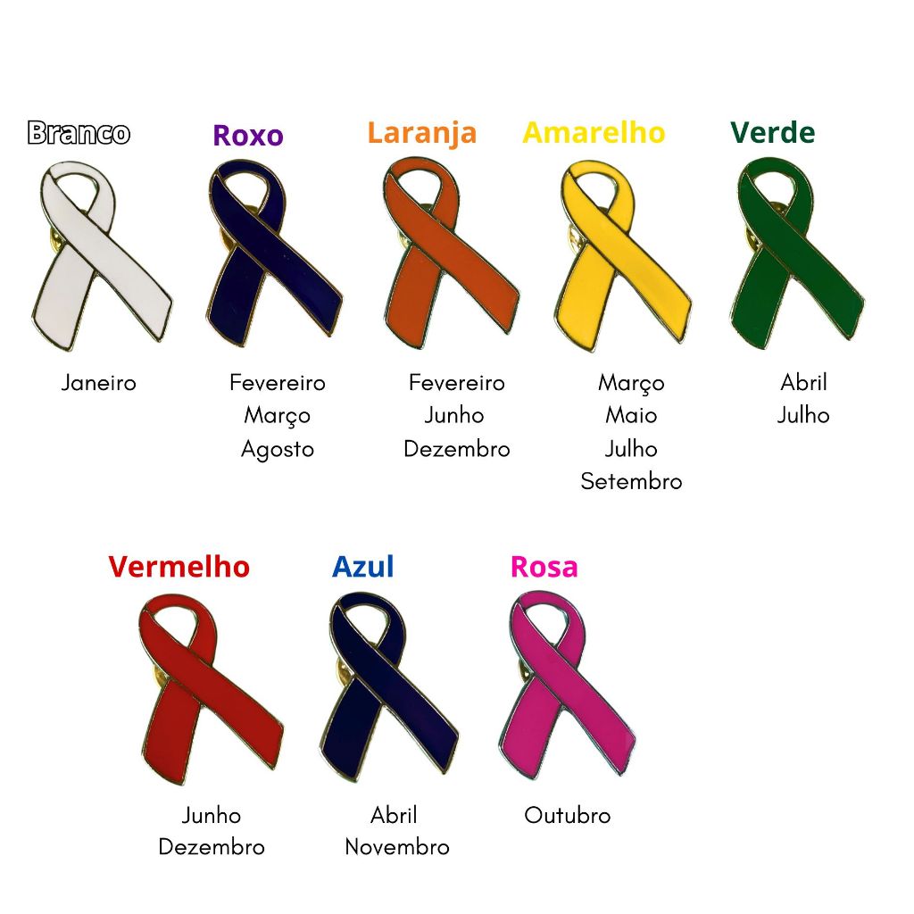 Pin Conscientização Broche Laço Campanhas Cores Variadas Apoio Causas Oficial Personalizado