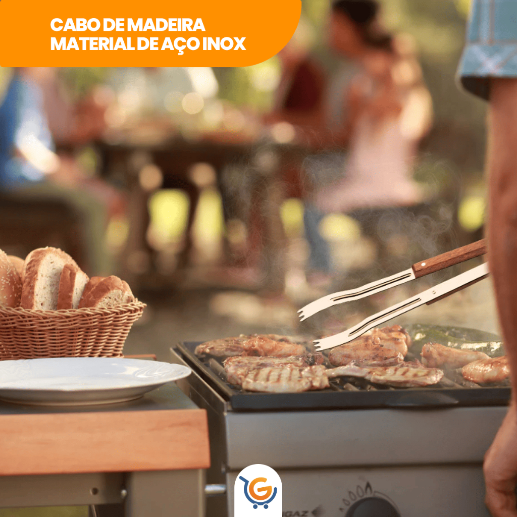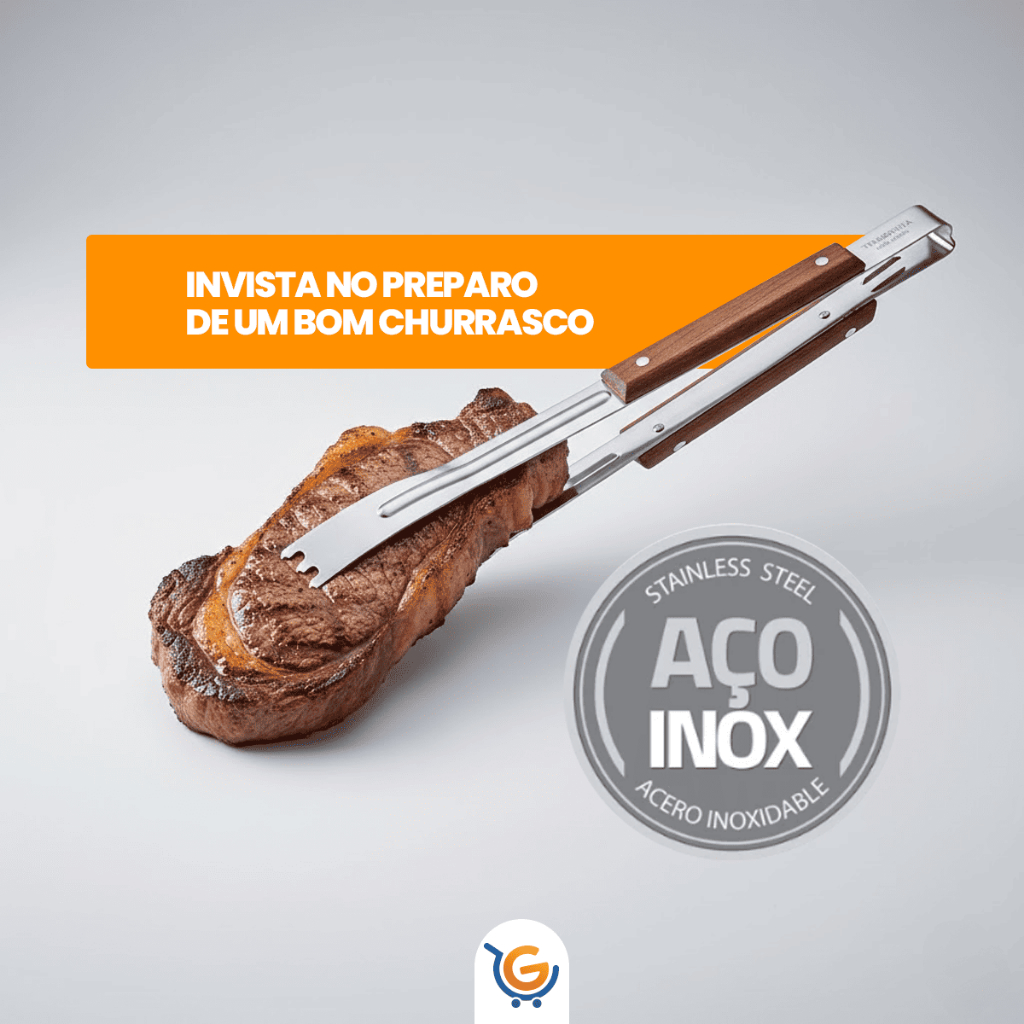 Pegador de Churrasco Grande Para Carne 47cm Cabo de Madeira Aço Inox Tramontina