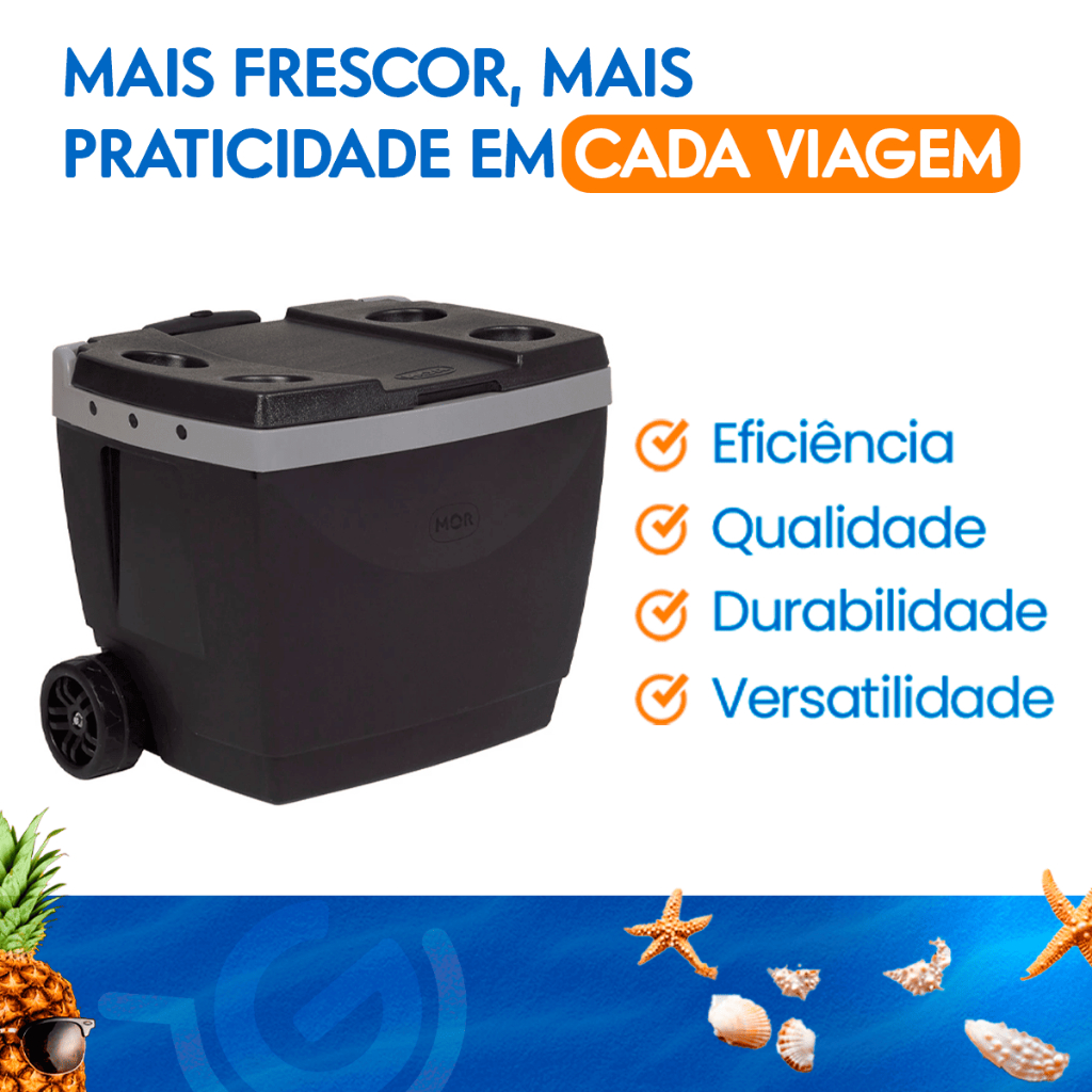 Caixa Termica Cooler Grande Com Rodinhas 42L Capacidade Até 56 Latas Resistente Tampa Porta Copo Mor