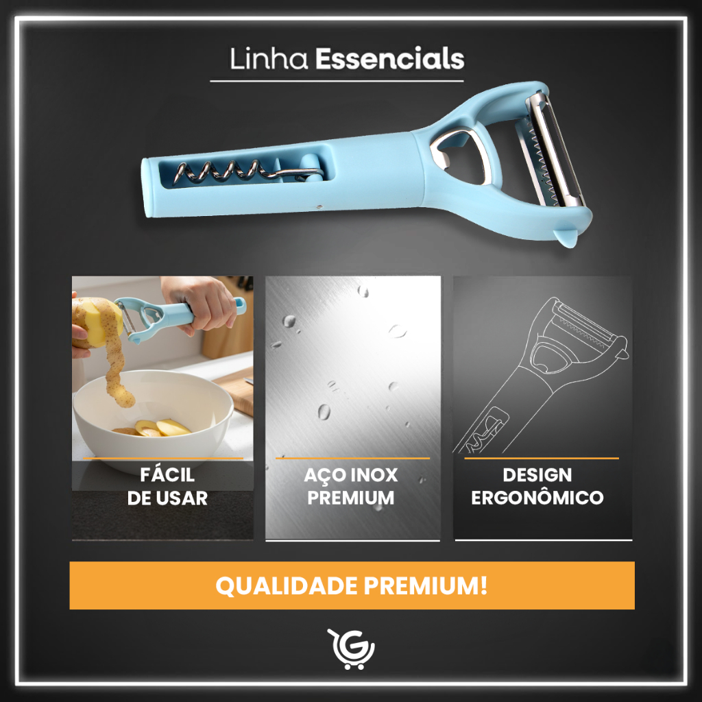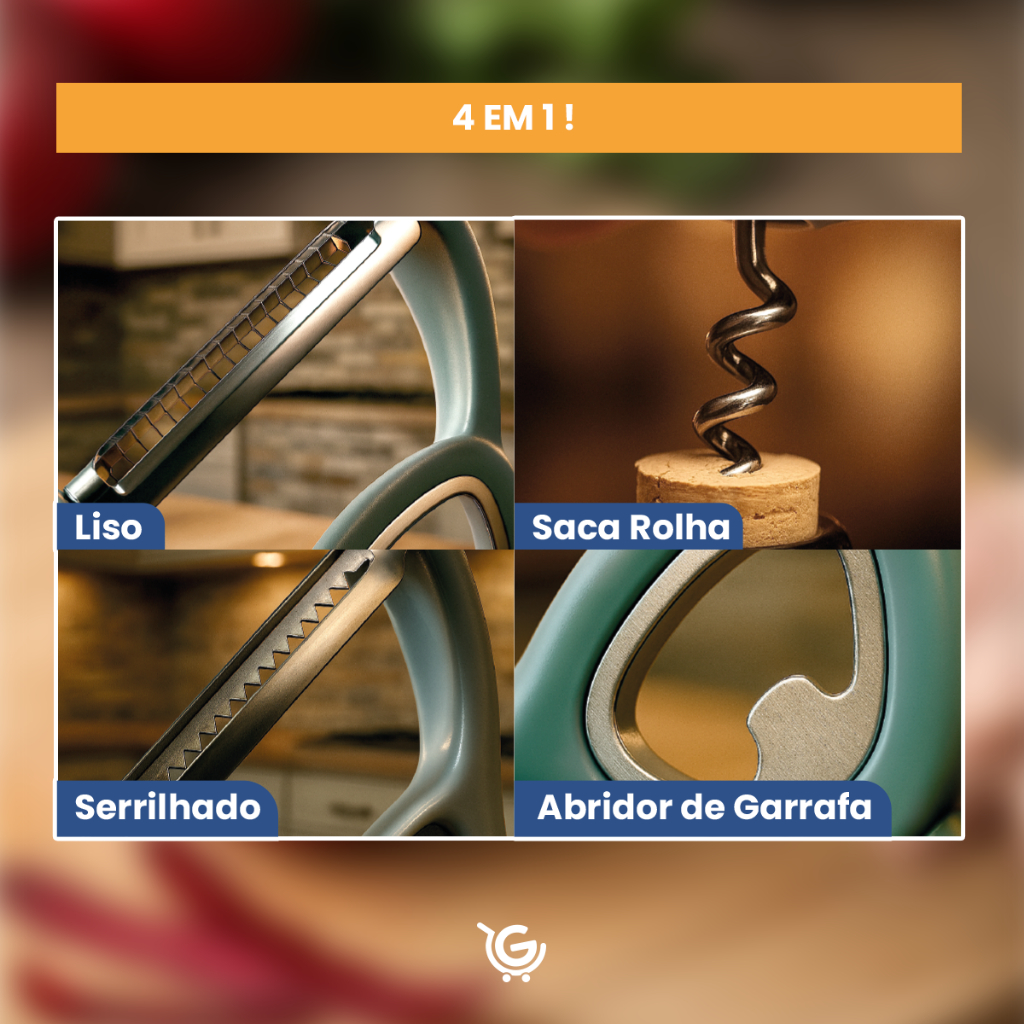 Descascador Fio Microsserrilhado e Liso 4 em 1 Saca Rolha Abridor de Garrafa Multiuso Cozinha
