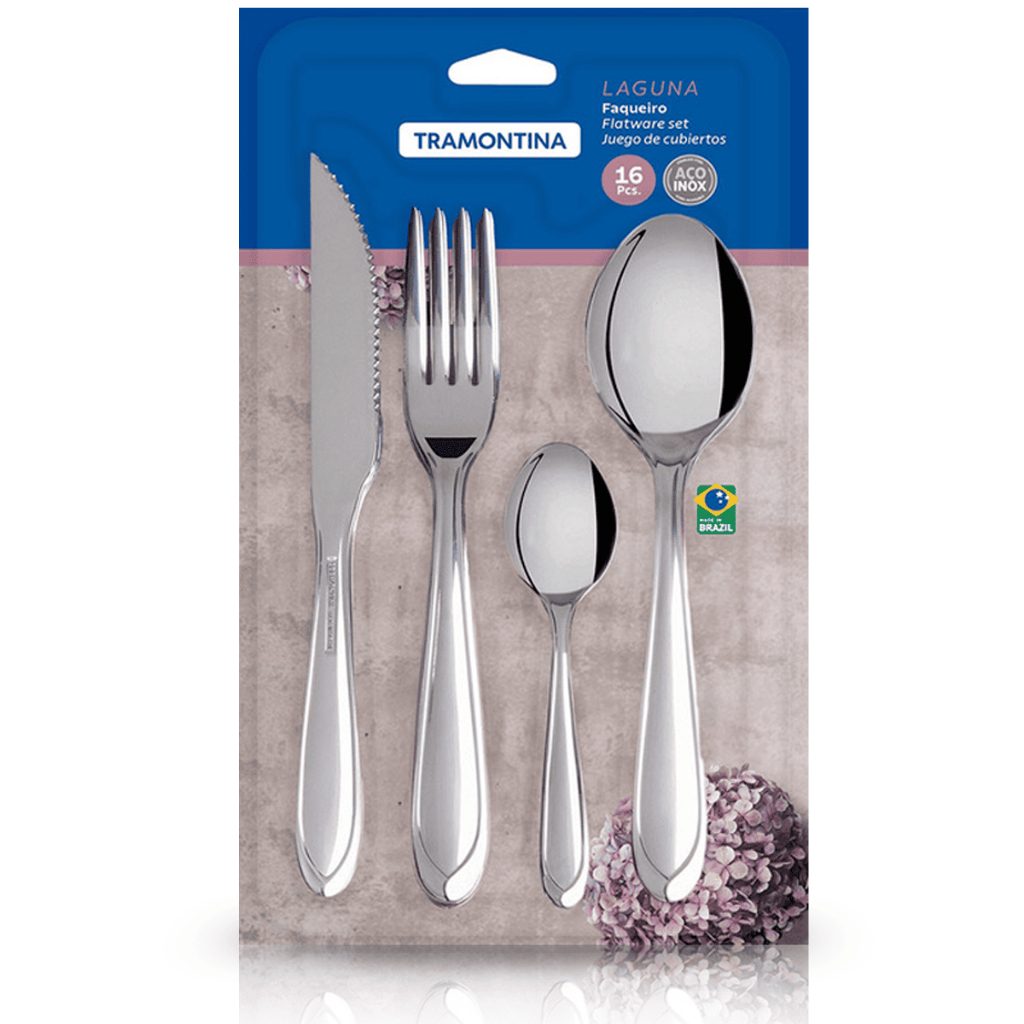 Jogo de Talheres de Inox Faqueiro 16 Peças Garfo Faca Colher de Sopa Colher de Chá Laguna Tramontina
