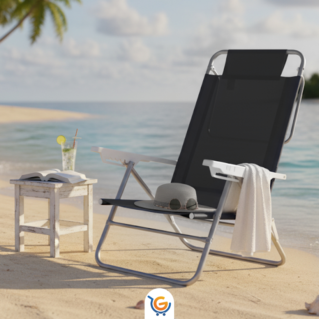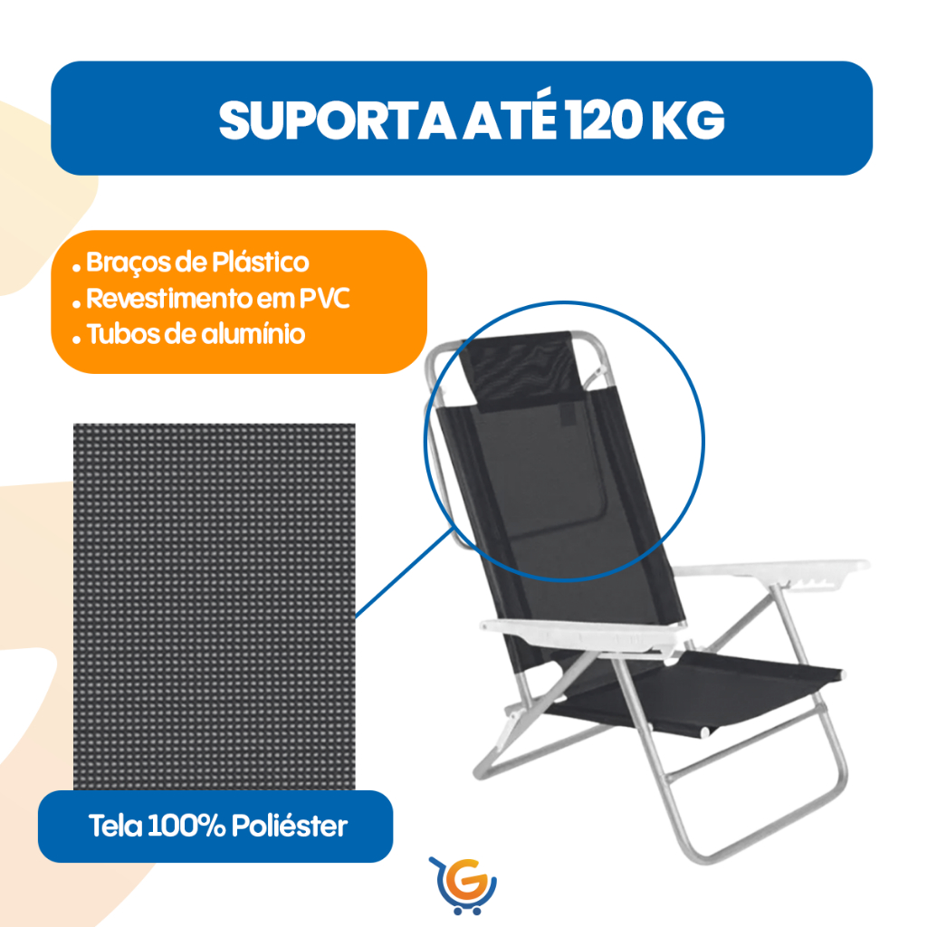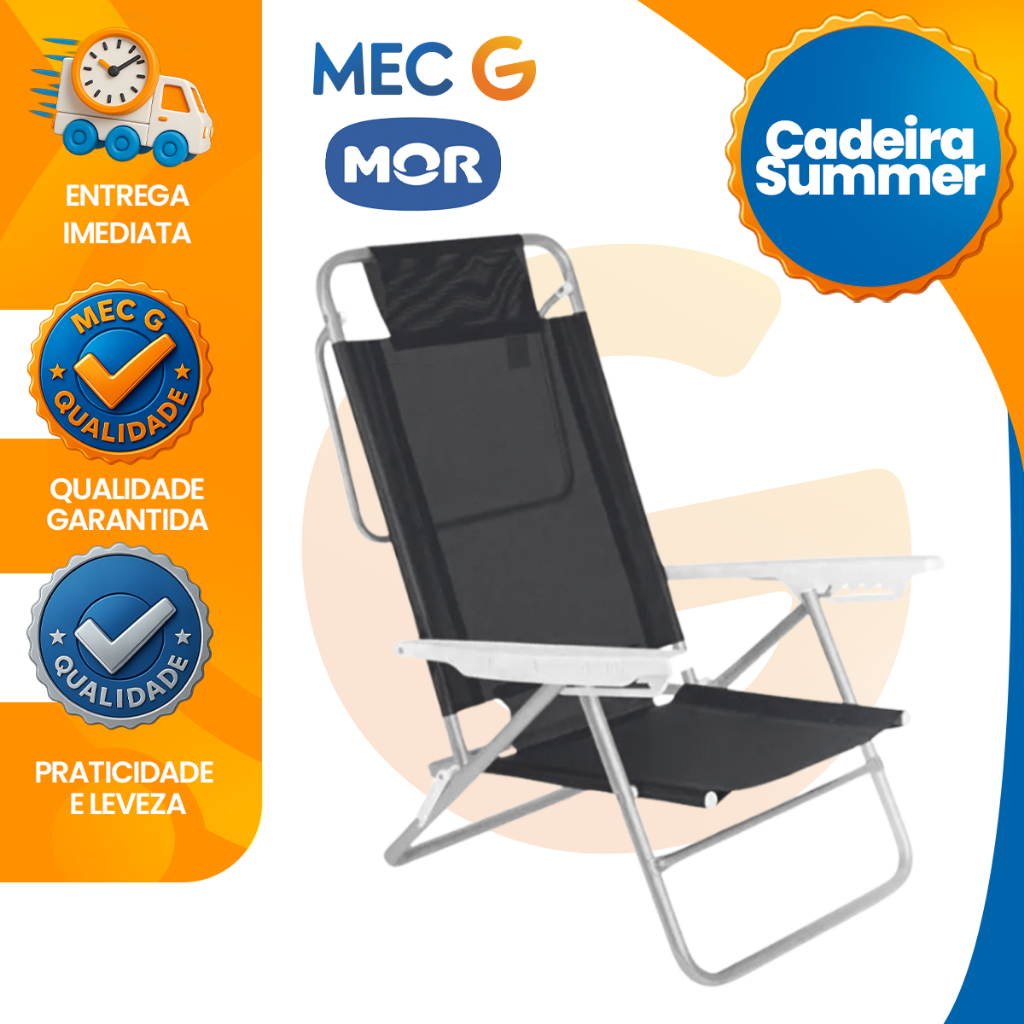 Cadeira de Praia Summer Reclinavel 6 Posições Aluminio Suporta Até 120Kg Apoio de Braço Mor