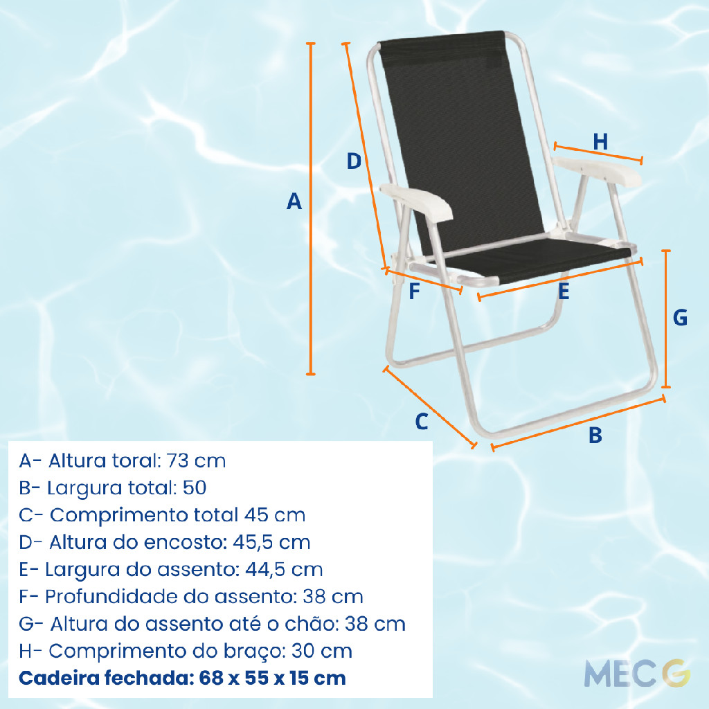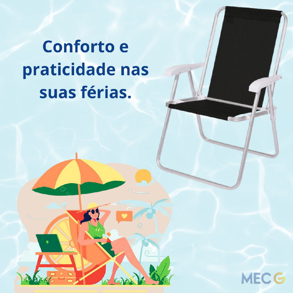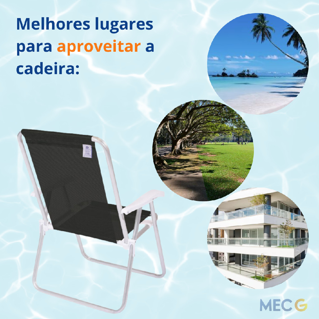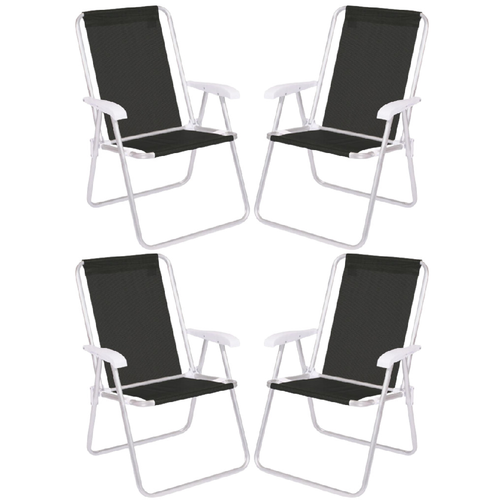 Kit 4 Cadeira de Praia Conforto Alta Braço de Plástico Jardim Preta Portátil Dobrável Tela Sannet Mor