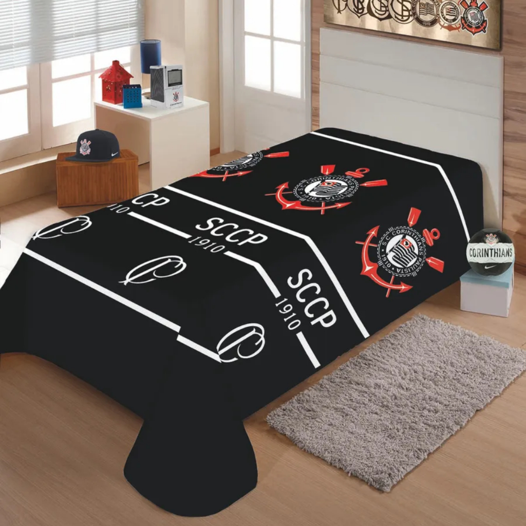 Cobertor Vai Corinthians Manta Quentinha Cama Solteiro Curintia Coringão Bi Campeão Alvinegro