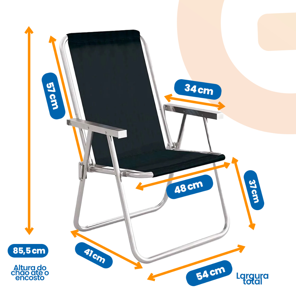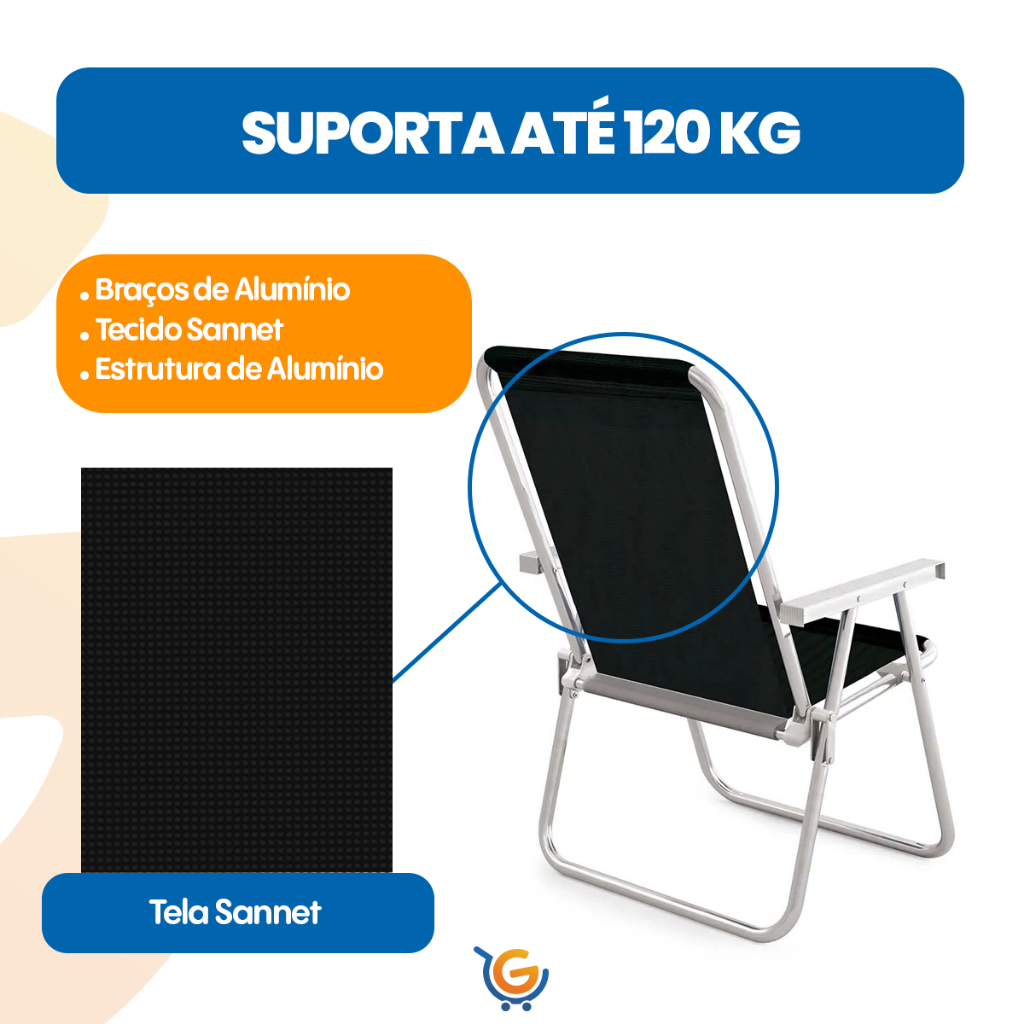 Cadeira de Praia Leve Resistente Dobravel Aluminio Reforçada Não Enferruja Suporta Até 120Kg Mor