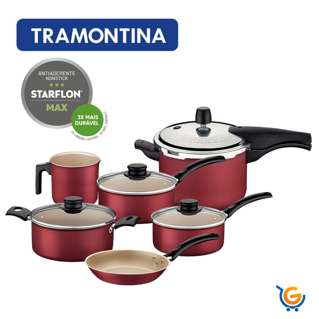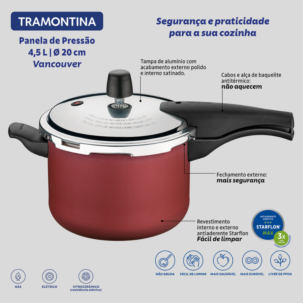 Jogo de Panelas 5 Peças com Panela de Pressão 4,5 Litros Fechamento Externo Antiaderente Tramontina