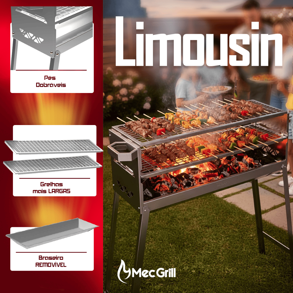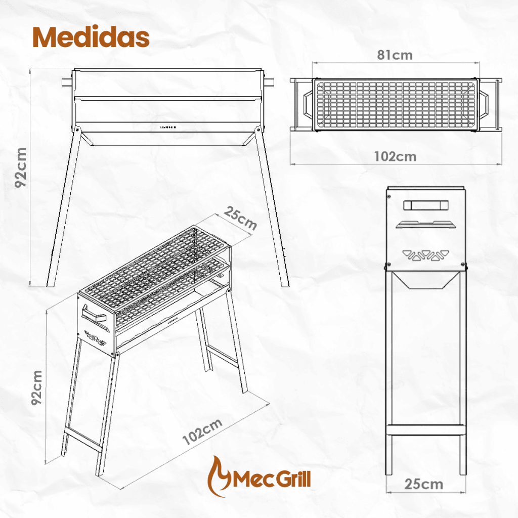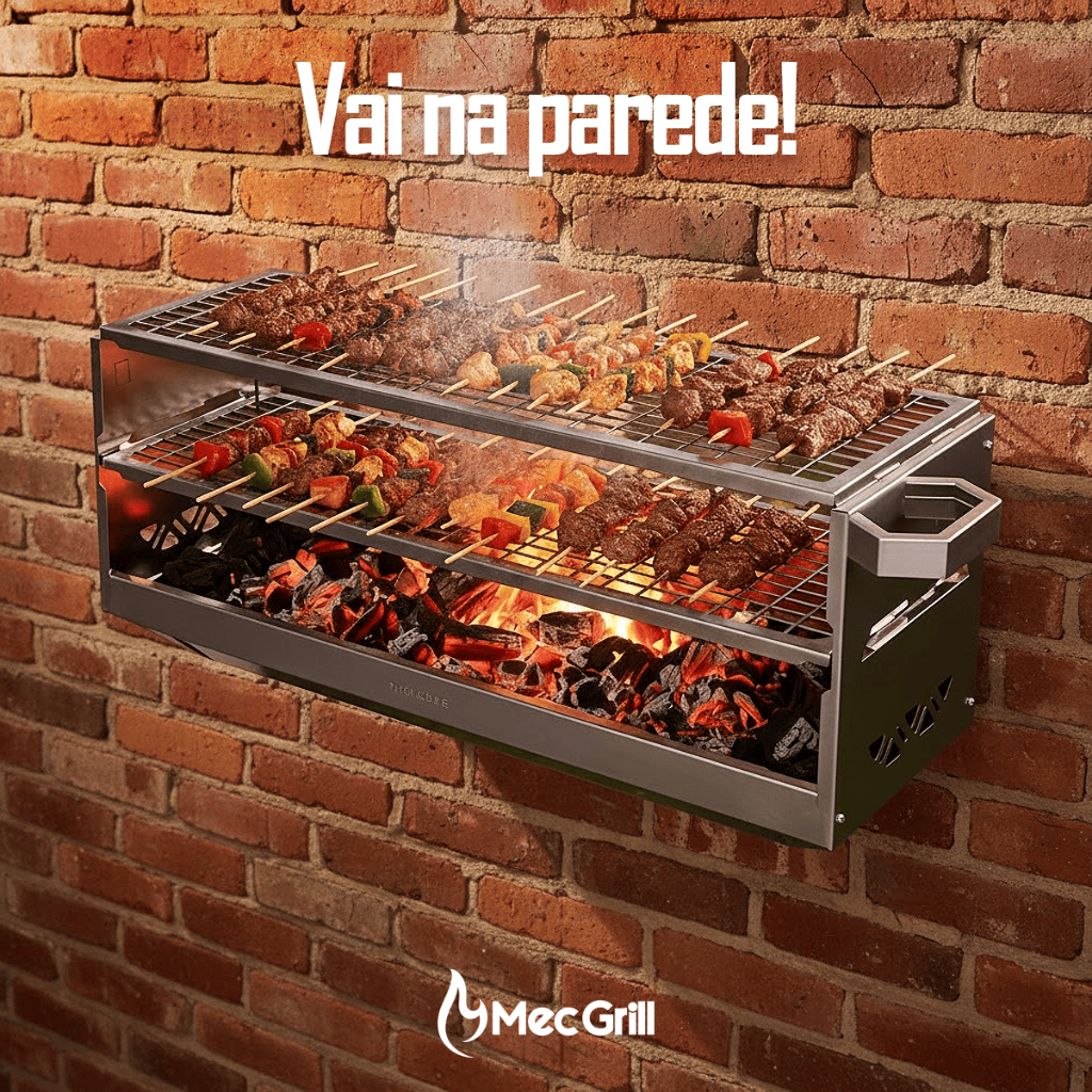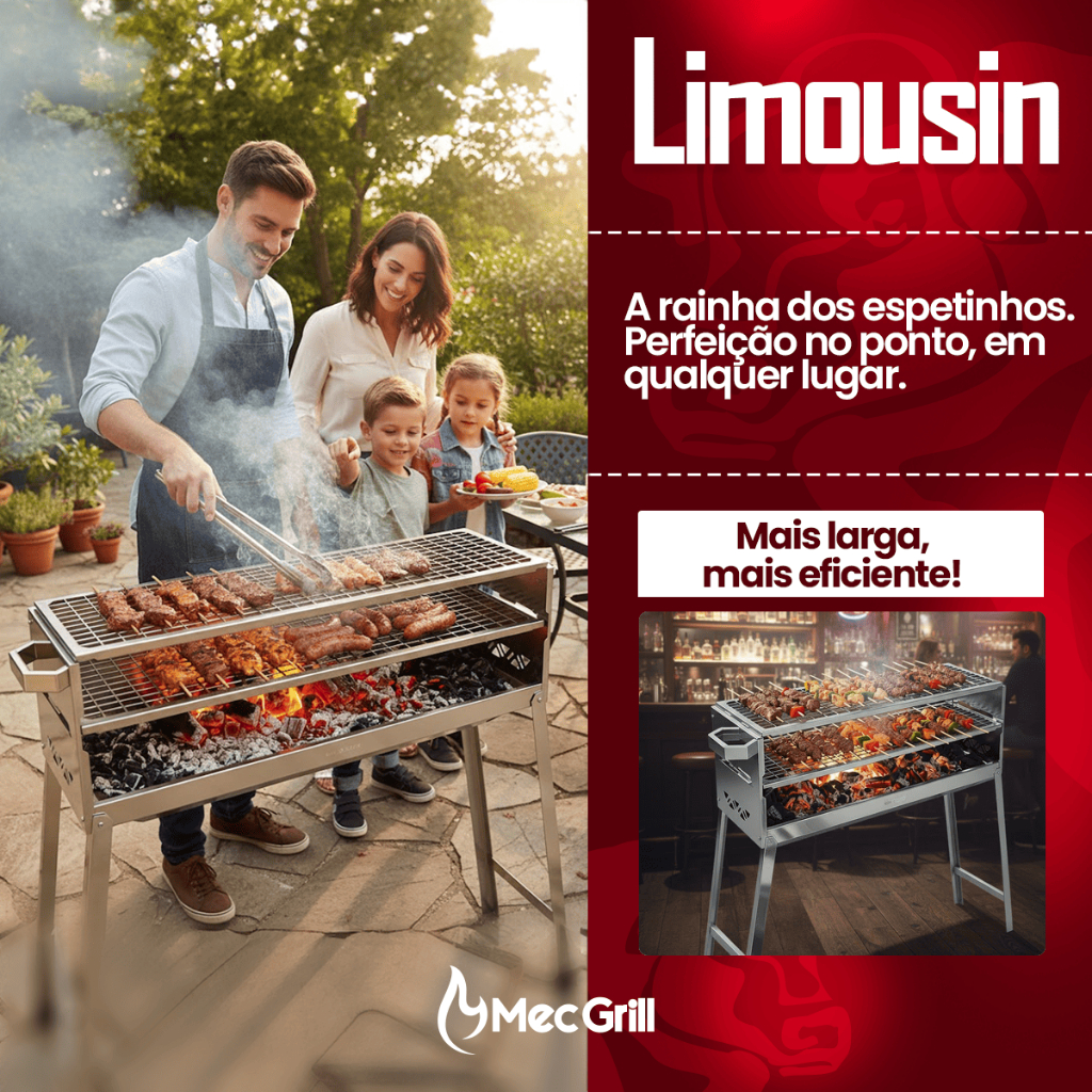Churrasqueira de Espetinhos Aço Inox 430 Resistente 80x25 Limousin Carvão Grelha