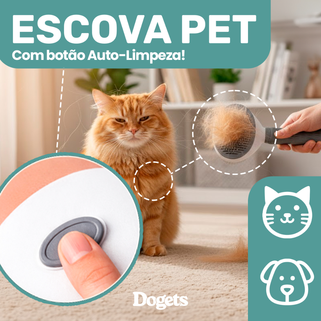 Escova Removedora de Pelos Cachorro Gatos Multifuncional Rasqueadeira Dogets