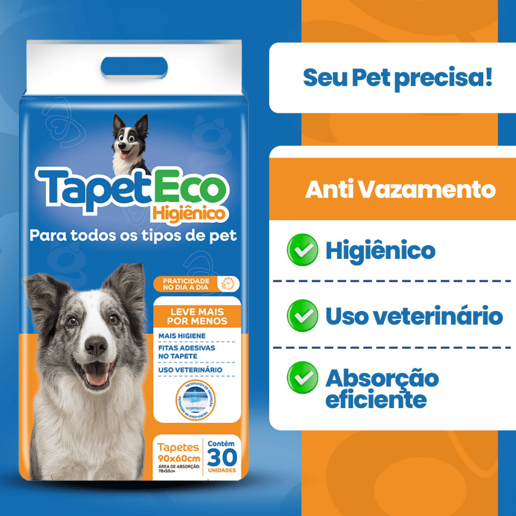 Tapete Higiênico Pet 90x60 Para Cachorro Alta Absorção Adesivo 120 Unidades TapetEco Envio Imediato