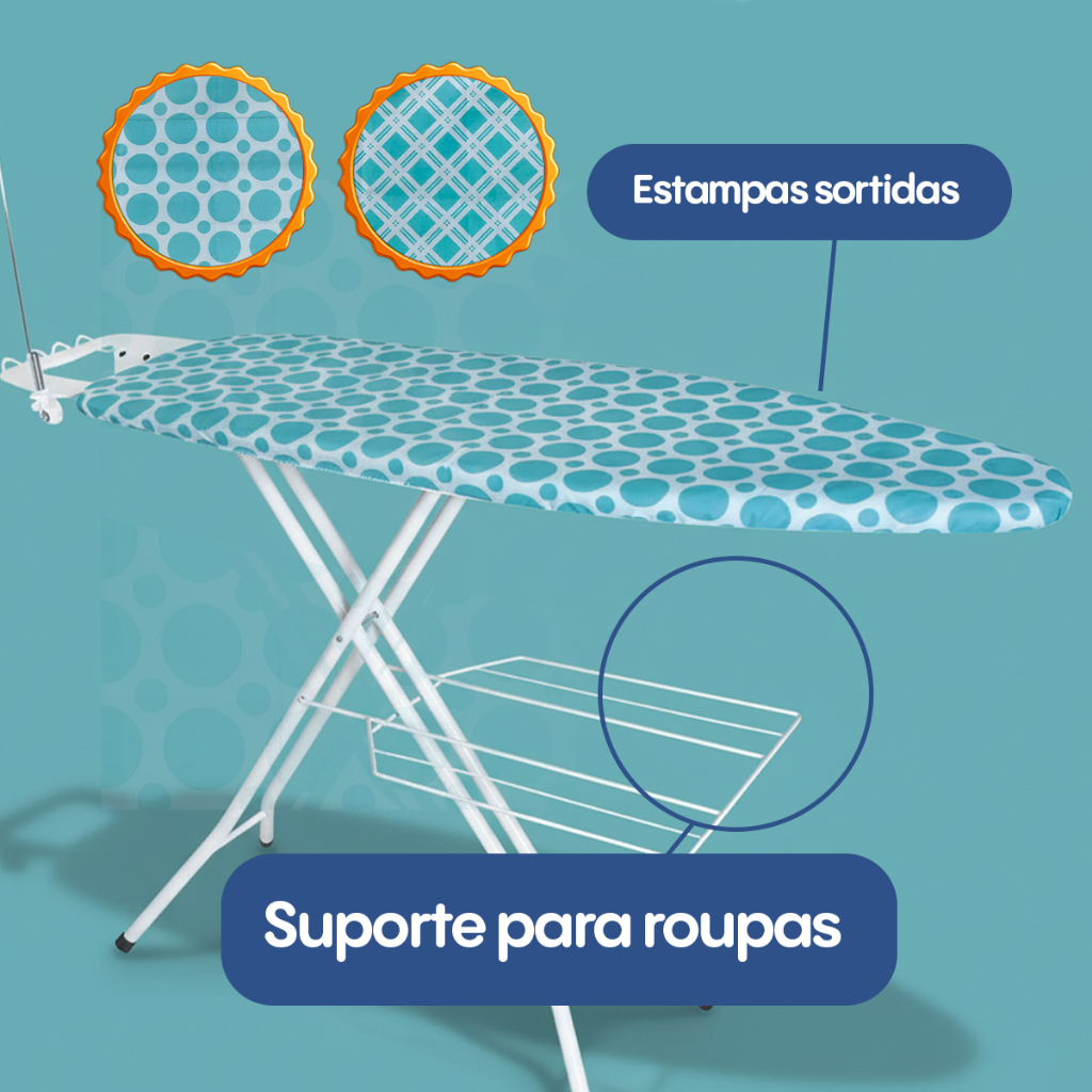 Tábua de Passar Roupa Suporte para Ferro de Passar Regulagem de Altura Até 20Kg Estampa Sortida Mor
