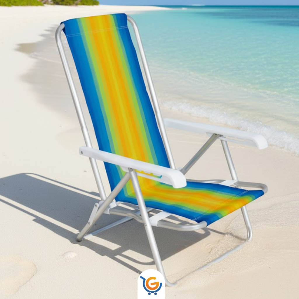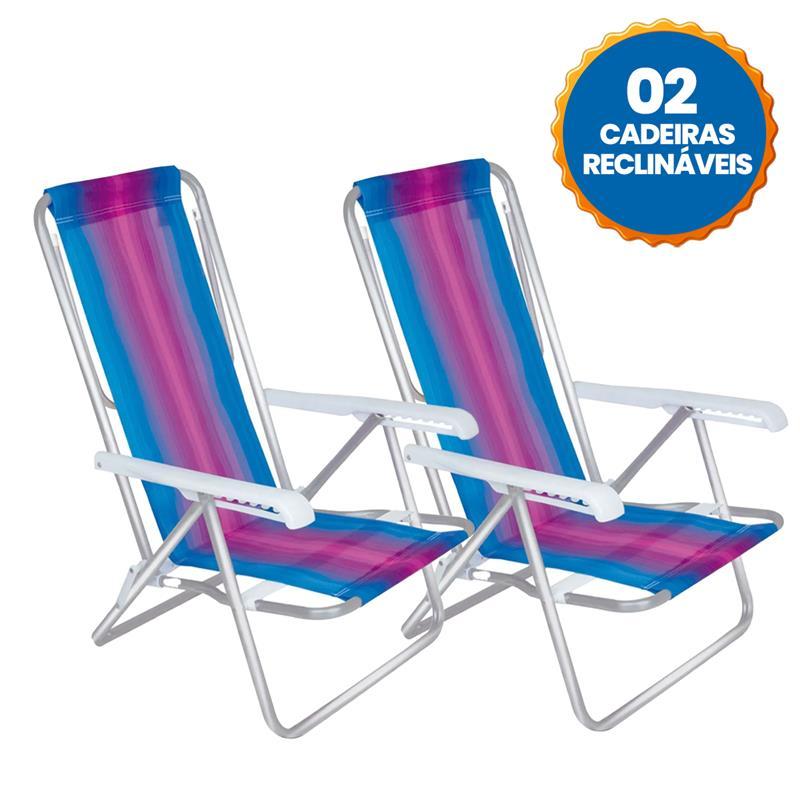 Cadeira de Praia Reclinavel em 8 Posições Aluminio Leve Resistente Suporte Até 100Kg Colorida Mor