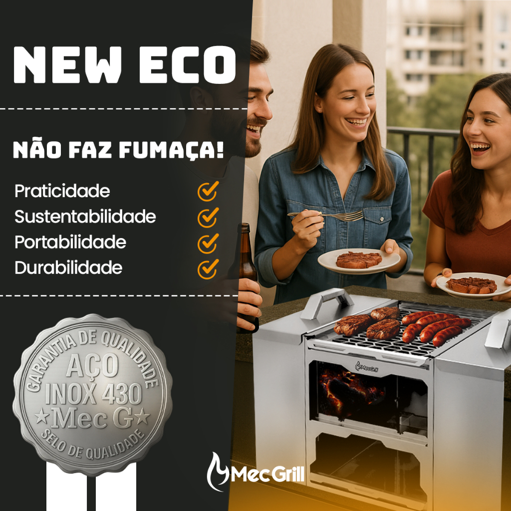 Churrasqueira Aço Inox Ecológica A Carvão Para Apartamento Sem Fumaça New Eco 50x40cm Mec Grill