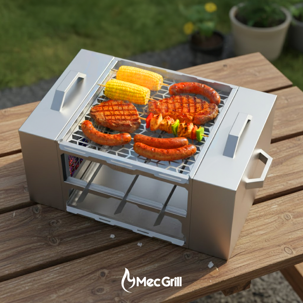 Churrasqueira Inox New Ecológica 430 Não Faz Fumaça Resistente Portátil a Carvão Durável 65x40